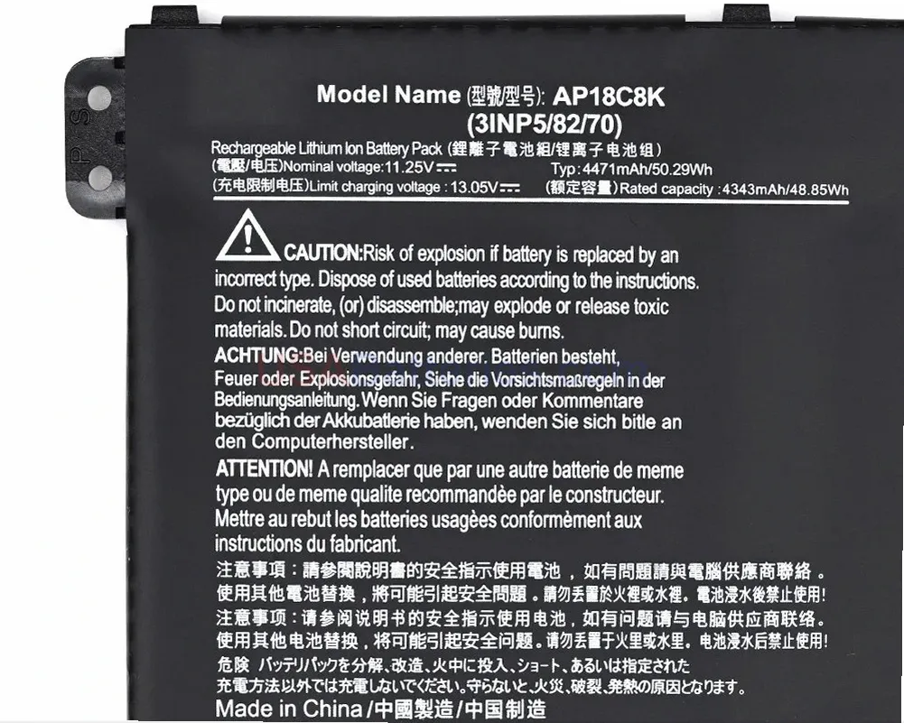 New Acer AC18C4K replacement battery, built for compatible notebooks.