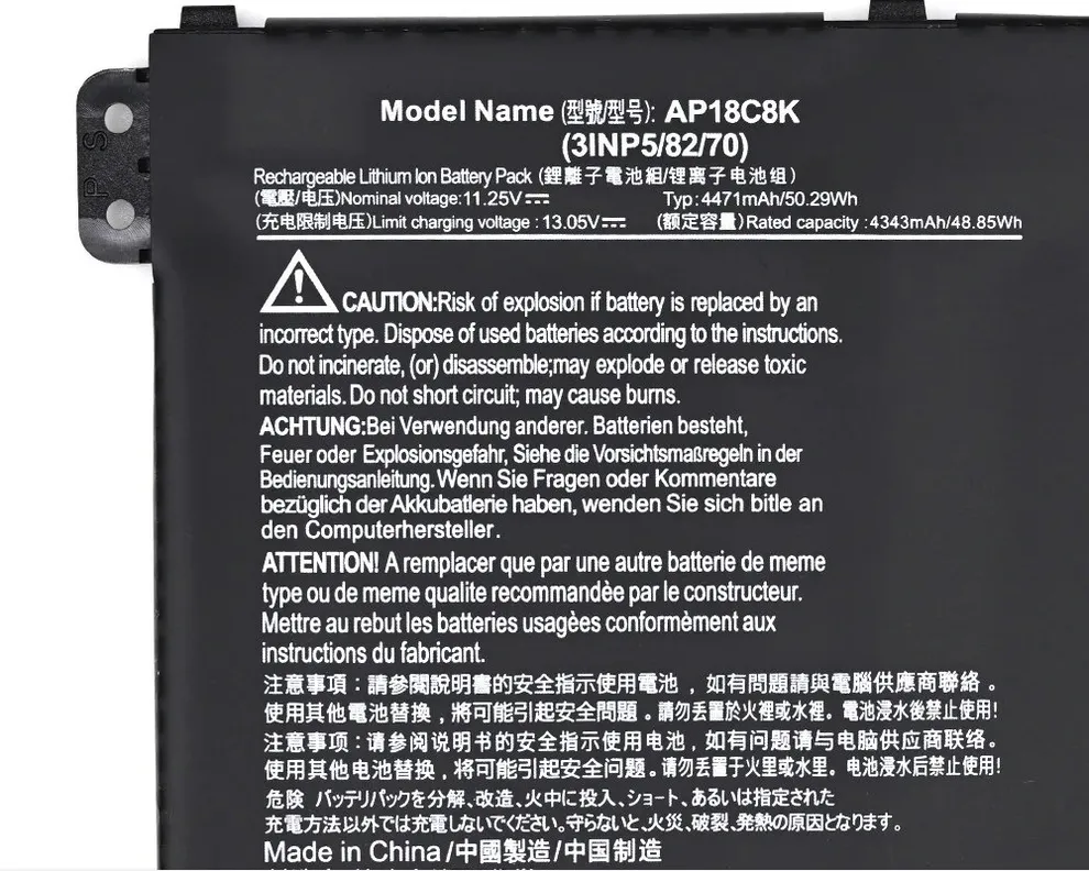 | Compatible Part Numbers | 3INP5, A114-61, A315-42, A315-54, A317, A514, A514-52, A514-52K, A514-54, A514-54G, A515, A515-43, A515-44G, A515-52K, A515-54, A515-56, A515-56G, A515-56S, A515-56T, A715, A715-42G, AP18C4K, AP18C8K, B118-M, C933, C933LT, CB315-3H, CB315-3HT, CP713-2W, P215, P215-52, P215-52G, P215-53, P215-53G, SF314, SF314-41, SF314-42, SF314-52, SF314-54N, SF314-57, SF314-57G, SF314-58, SF314-58G, SF314-59, SP314-54N, TMP215 |