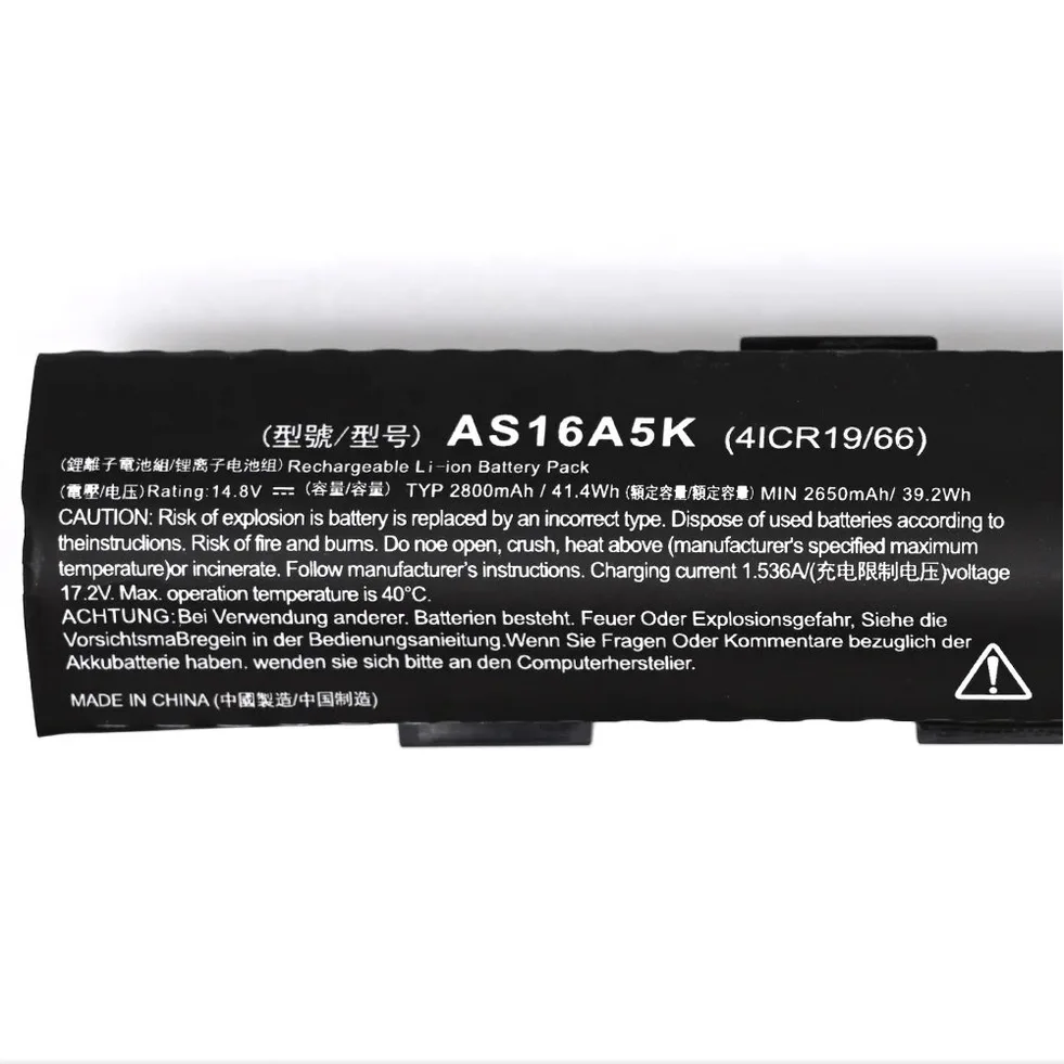 Compatible Part Numbers0040G, 33BM, 475G, 4ICR19, 4INR19, 523G, 52JF, 54E8, 54EB, 553G, 573G, 575G, 575G-30ZJ, 575G-3561, 575G-50CB, 575G-50QS, 575G-513W, 575G-52DD, 575G-52NP, 575G-534D, 575G-53B8, 575G-53VG, 575G-54TU, 575G-54XH, 575G-55NS, 575G-55S7, 575G-56ED, 575G-56GU, 575G-56KS, 575G-56WG, 575G-57D4, 575G-58TF, 575G-58UJ, 575G-59EE, 575G-59GV, 575G-765N, 575G-76YK, 575G-78GH, 575T, 575TG, 576G, 576G-5762, 59QB, 774G, AS16A5K, AS16A5KAS16A5K4ICR19/66AS16A7KAS16A8KKT.00605.002, AS16A7K, AS16A8K, E15, E5-475G, E5-575, E5-575-59QB, E5-575G, E5-575G-53VG, E5-774G, KT.00605.002, N16Q2