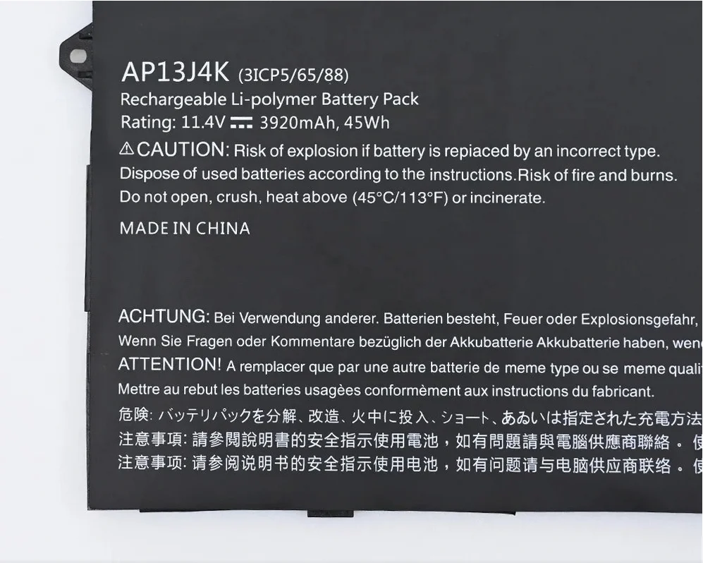 | Compatible Part Numbers | 0040G, 111P, 112M, 131T, 131T-C1YF, 131T-C28S, 132T, 132T-C32M, 132T-C732, 132T-C8KL, 132T-C8ZW, 30FA, 371T, 372T, 3ICP5, 431T, 471T, 4ICP5, 51QJ, 52EE, 52PY, 55DT, 571T, 571T-57Z0, 571T-59DC, 571TG, 571TG-7229, 59YR, A515-51, A515-51G, AC14B3K, AC14B8K, AC15A3J, AC15A8J, AN515-51, AN515-52, AN515-53, AP13J3K, AP13J4K, B115-M, B115-MP, C09S, C1CA, C1DZ, C2KX, C3KD, C3SZ, C4A5, C4G4, C4RW, C5XU, C670, C720, C720P, C732L, C735, C738T, C740, C810, C910, CB3, CB3-131, CB5-132T, CP5, KT0030G, N15W5, NE512, R11, SF314-51, SF314-52, SF314-52G, TF71-BM, TG71-BM, TG81-BA, TG83-BA |
