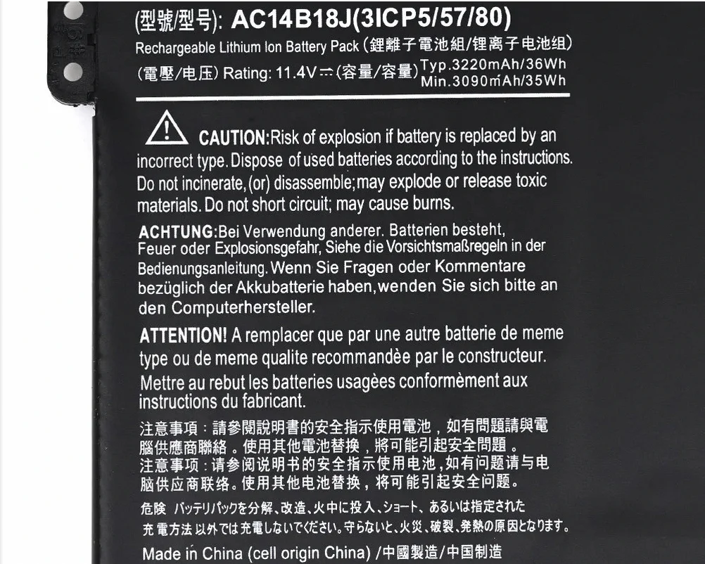 | Compatible Part Numbers | 0040G, 111M, 111P, 112M, 112M-C8LD, 122P, 131T, 131T-C1YF, 131T-C28S, 132P, 2ICP5/67/89, 30FA, 371T, 372T, 3ICP5, 3UF426080-1, 431T, 471T, 4ICP5, 51QJ, 52EE, 52PY, 55DT, 571T, 571T-57Z0, 571T-59DC, 571TG, 59YR, 731G, 771G, 934TA001F, AC13C34, AC14B18J, AC14B3K, AC14B8K, B115-M, B115-MP, BAT-1010, BAT1010, BT00203002, BT00207001, C09S, C0A7, C0M6, C0UM, C138, C188, C1DZ, C2KX, C4A5, C4G4, C4U8, C53T, C5AL, C5XU, C670, C810, C827, C8UB, C910, E3-111, E3-112, E3-112M, ES1-511, G34TA002F, KT00303005, KT0030G, MS237, NE512, T1000, TF71-BM, TG71-BM, TG81-BA, TG83-BA, V3-111, VI04 |
