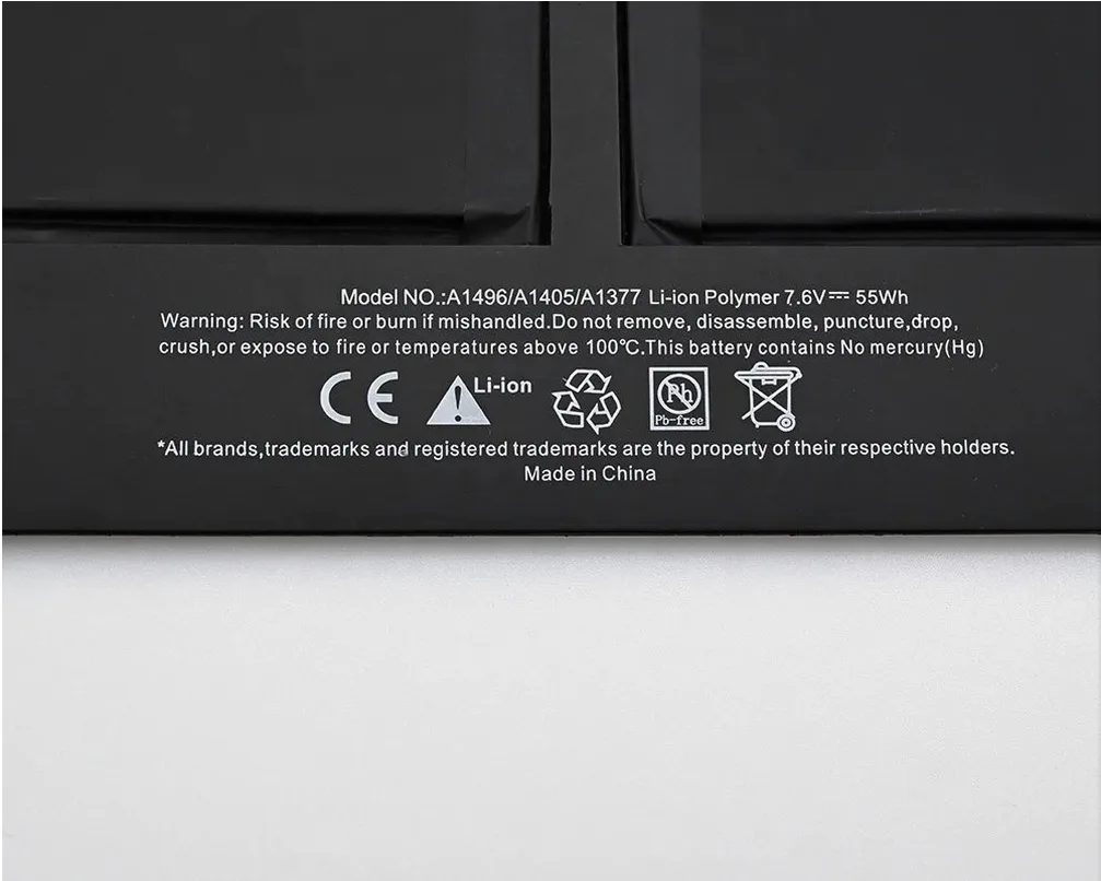 Replacement battery for Apple MacBook Air 13-inch and MacBook Pro series laptops.