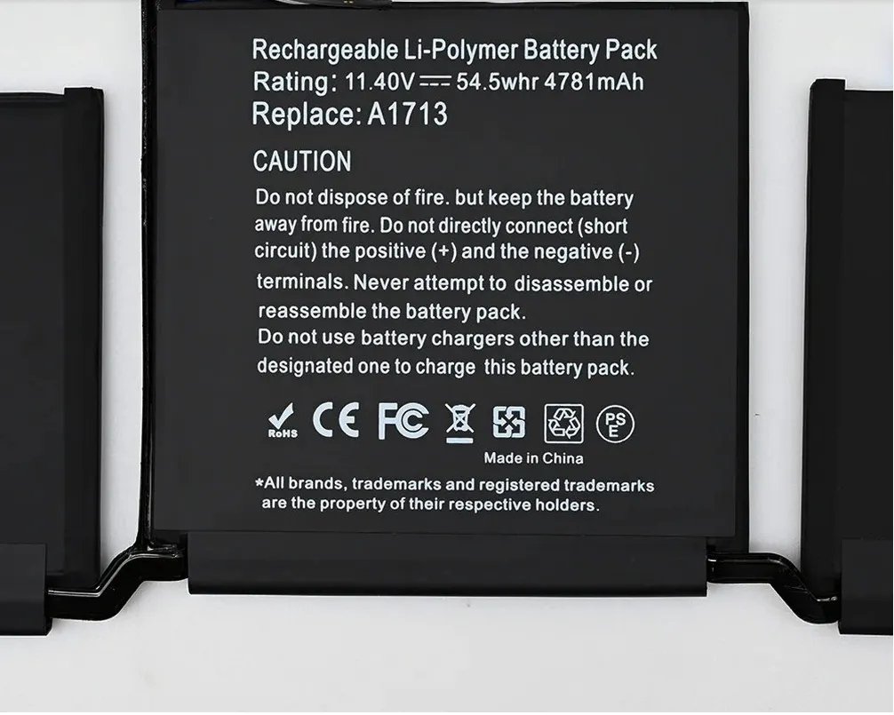 Replacement battery for Apple MacBook Pro 13-inch A1708 and A1713 series laptops.