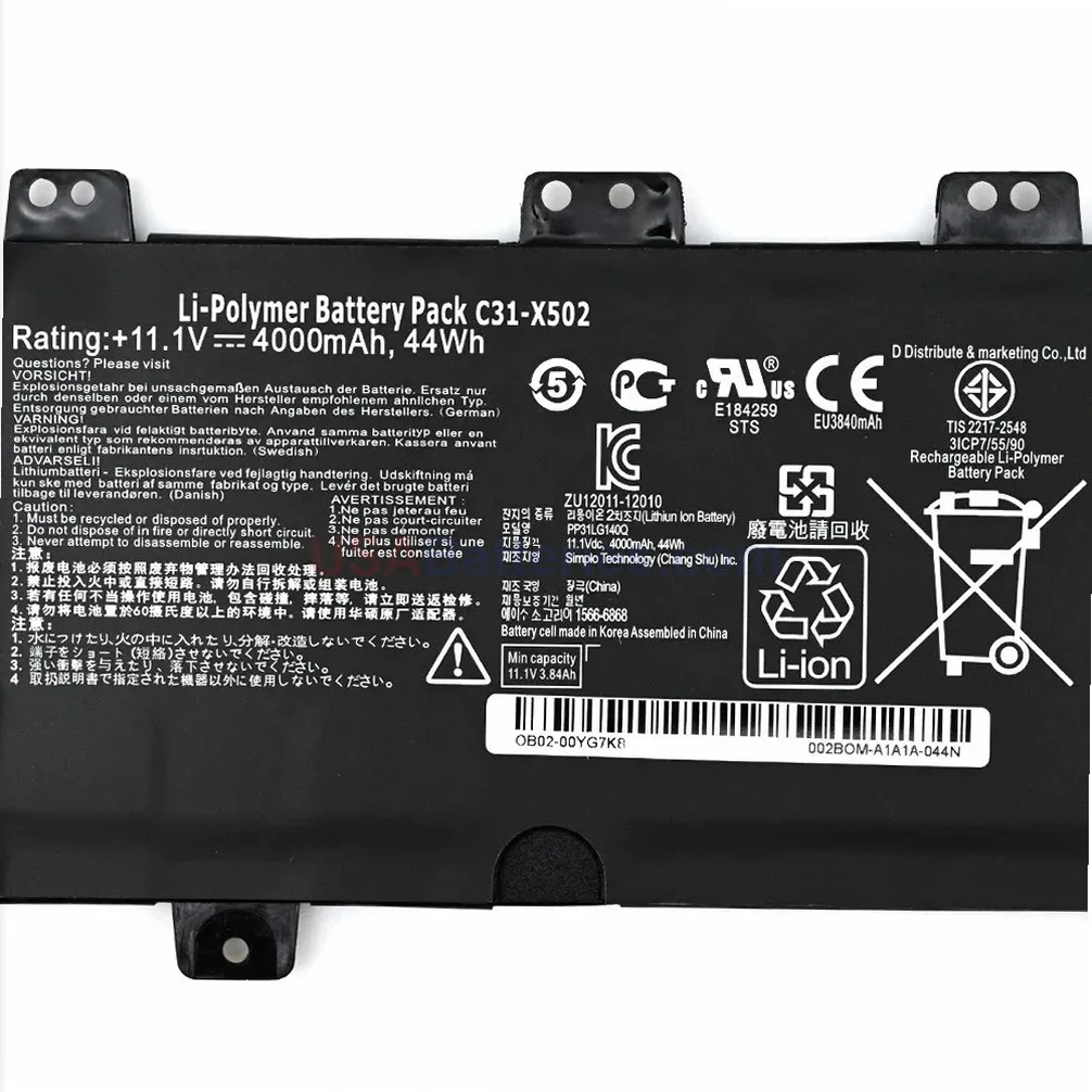 Direct-fit Asus X502C replacement battery for select laptop models.
