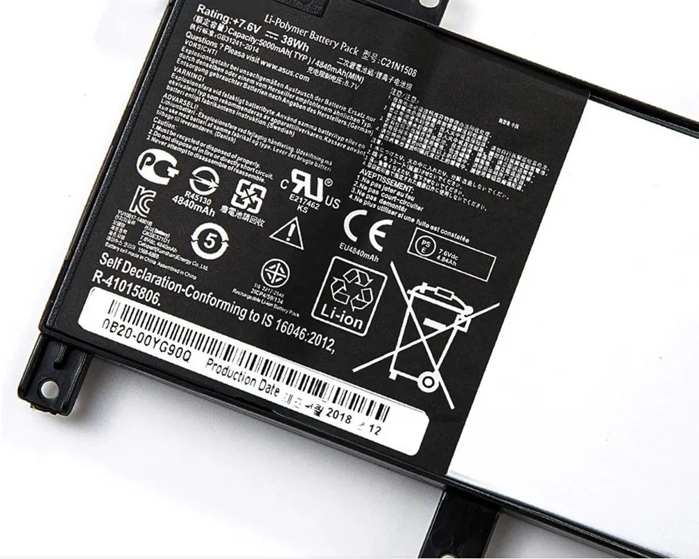 Compatible Part Numbers0B200-03590000, 0B200-03680000, 0B200-03680100, 0B200-03680200, 3ICP5, 4ICP5, A15, A17, A409, A409DA, A409F, A409FA, A409FB, A409FJ, A409J, A409JA, A409JB, A409JP, A409M, A409MA, A415, A415D, A415DA, A415E, A415EA, A415J, A415JA, A456U, A456UJ, A509, A509DA, A509F, A509FA, A509FB, A509FJ, A509J, A509JA, A509JB, A509JP, A509M, A509MA, A515, A515D, A515DA, A515E, A515EA, A515EP, A515J, A515JA, A545, A545F, A545FA, A545FJ, B0B200-03620000, B21N1818-2, B21N1818-3, B31N1912, C21N1508, C21N1818-3, C31N1912, C41N1906, C41N1906-1, D409, D409B, D409BA, D409D, D409DA, D409DJ, D409DL, D415, D415D, D415DA, D415U, D415UA, D509, D509B, D509BA, D509D, D509DA, D509DJ, D509DL, D515, D515D, D515DA, D515U, D515UA, E410, E410KA, E410KA-EK139TS, E410M, E410MA, E410MA-BV1169TS, E410MA-EK007TS, E410MA-EK017TS, E410MA-EK018TS, E410MA-EK026TS, E410MA-EK028TS, E410MA-EK087T, E410MA-EK211T, E410MA-EK319T, E410MA-EK321T, E410MA-EK327TS, E410MA-EK367TS, E410MA-EK378T, E410MA-EK505T, E410MA-EK542T, E410MA-EK946TS, E410MA-EK991TS, E510, E510KA, E510KA-EJ033TS, E510MA, EK087T, F15, F17, F409, F409DA, F409F, F409FA, F409FB, F409FJ, F409J, F409JA, F409JB, F409U, F409UA, F409UB, F414, F414MA, F415, F415E, F415EA, F415J, F415JA, F415M, F415MA, F456U, F456UJ, F456UV, F509, F509DA, F509F, F509FA, F509FB, F509FJ, F509J, F509JA, F509JB, F509U, F509UA, F509UB, F515, F515E, F515EA, F515J, F515JA, F515M, F515MA, F545, F545F, F545FA, F545FJ, FA506IV, FA506QR, FA706IU, FX506, FX506IV, FX506LU, FX706, FX706IU, FX766IU, GX550, GX550LWS, GX550LXS, GX551, K456U, K456UJ, L410, L410M, L410MA, L410MA-BV037TS, L410MA-BV053TS, L410MA-BV058TS, L410MA-BV076TS, L410MA-BV077TS, L510, L510MA, M409, M409B, M409BA, M409D, M409DA, M409DJ, M415, M415D, M415DA, M415U, M415UA, M509, M509B, M509BA, M509D, M509DA, M509DJ, M515, M515D, M515DA, M515U, M515UA, R457U, R457UJ, R457UV, R522MA, R545, R565, R565E, R565EA, R565EP, R565F, R565FA, R565J, R565JA, R565JF, R565JP, R565M, R565MA, S415, S415D, S415DA, S415E, S415EA, S415J, S415JA, S515, S515D, S515DA, S515E, S515EA, S515J, S515JA, X409, X409BA, X409DA, X409F, X409FA, X409FB, X409FJ, X409FL, X409J, X409JA, X409JB, X409JP, X409M, X409MA, X415, X415D, X415DA, X415DAP, X415E, X415EA, X415EP, X415F, X415FA, X415FAC, X415J, X415JA, X415JAB, X415JP, X415M, X415MA, X456U, X456UF, X456UJ, X509, X509BA, X509DA, X509F, X509FA, X509FB, X509FJ, X509FL, X509J, X509JA, X509JB, X509JP, X509M, X509MA, X515, X515D, X515DA, X515DAP, X515E, X515EA, X515EP, X515F, X515FA, X515FAC, X515J, X515JA, X515JAB, X515JP, X515M, X515MA, X545, X545FA, X545FB, X545FJ
