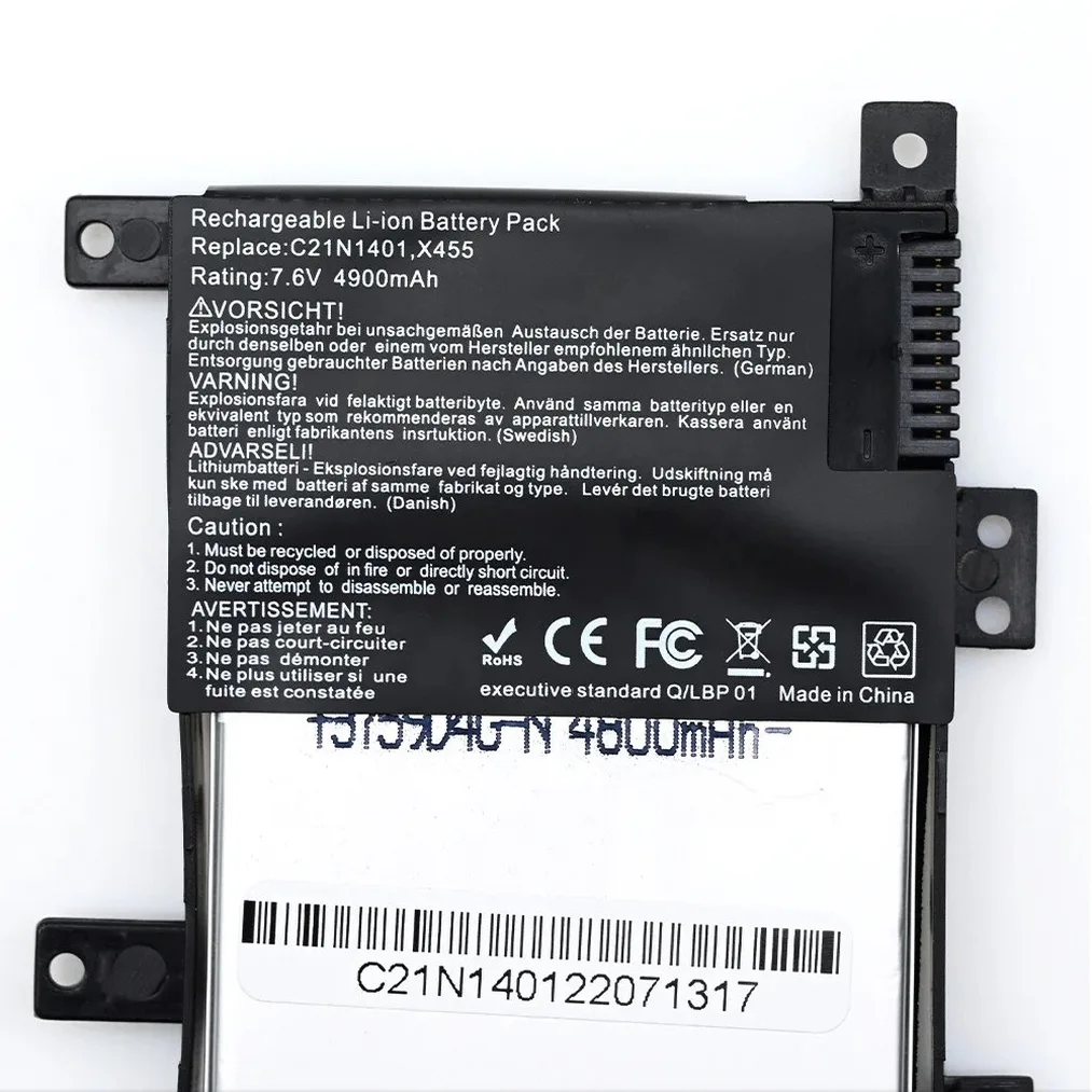 Compatible Part Numbers0B200-01320700, 0B200-03680000, 0B200-03680100, 2ICP4, A555L, B31N1912, C21N1347, C21N1401, C31N1912, DX882L, E410, E410KA, E410KA-EK139TS, E410M, E410MA, E410MA-EK007TS, E410MA-EK017TS, E410MA-EK026TS, E510, E510KA, E510KA-EJ033TS, E510MA, F414, F414MA, F454L, F455L, F455LD, F455LD4030, F455LD4210, K455L, K455LD, K455LD4010, K455LF, K455LJ, K555L, K555LA, K555LD, L410, L410M, L410MA, L410MA-BV037TS, L410MA-BV053TS, L410MA-BV058TS, L510, L510MA, L510MA-WB04, R522MA, R556L, VM410L, VM590L, W409L, W419L, W519LD, X455L, X455LA, X455LD, X455LF, X455LJ, X550, X555, X555L, X555LA, X555LD, X555LN, Y483L, Y483LD, Y583LD