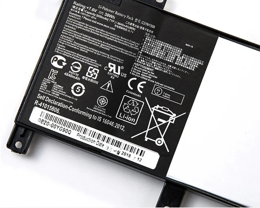 | Compatible Part Numbers | 0B110-00250000, 0B110-00250100, 0B110-00250100M, 0B110-00250600, 2ICP4, A31LJ91, A31N1319, A41N1308, A456U, A555L, C21N1347, C21N1508, CKSE14122, D550, F456U, F554L, F555L, K456U, K555L, K555LA, K555LD, PP21AT149Q-1, R457U, R556L, VM590L, W519LD, X451, X451C, X451CA, X456, X456U, X550, X551, X551C, X551CA, X551CA-0051A2117U, X551CA-DH21, X551CA-SX024H, X551CA-SX029H, X551M, X551MA, X555, X555L, X555LA, X555LD, X555LD4030, X555LD4210, X555LJ, X555LN, X555LP, X555SJ, X555YI, Y583LD |