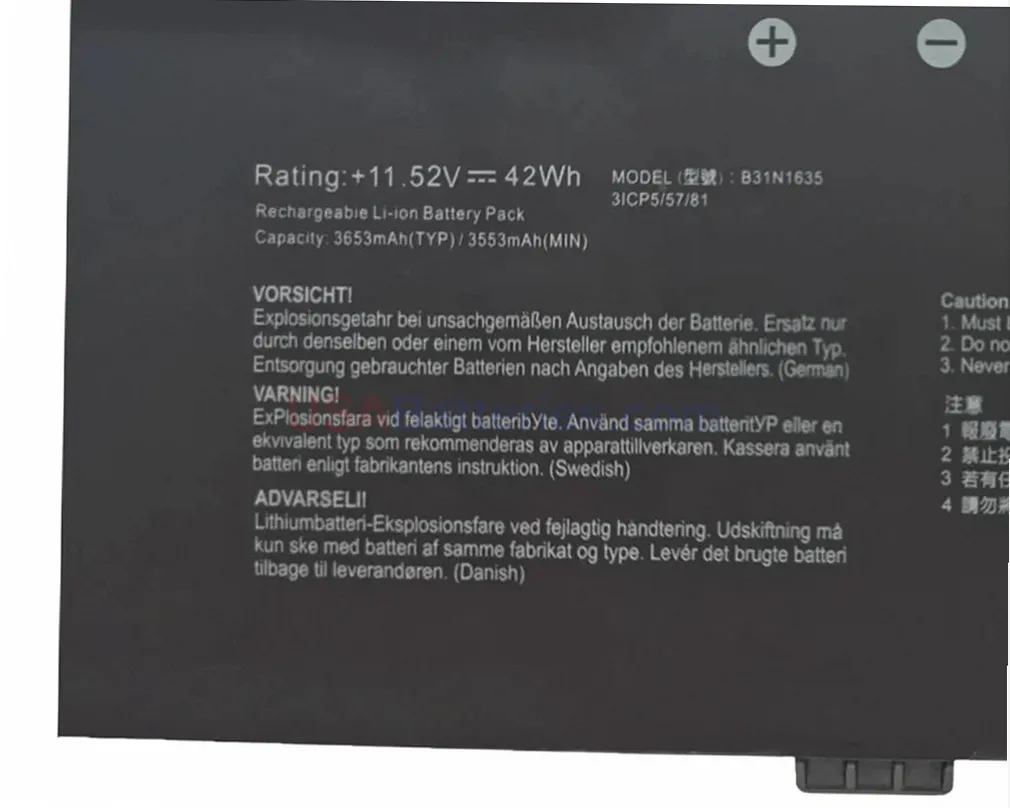 - ๐ Voltage: 11.52V ยท Capacity: 42.0Wh / 3646mAh ยท Type: Li-ion