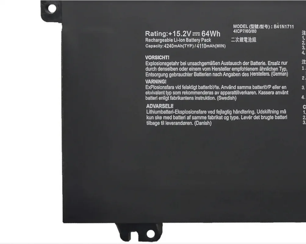 | Compatible Part Numbers | B41N1711, FX705, FX705D, GL503GE, GL503VM, GL703, GL703GE, GL703VD, GL703VM, ZX63, ZX63VD, ZX73VM |