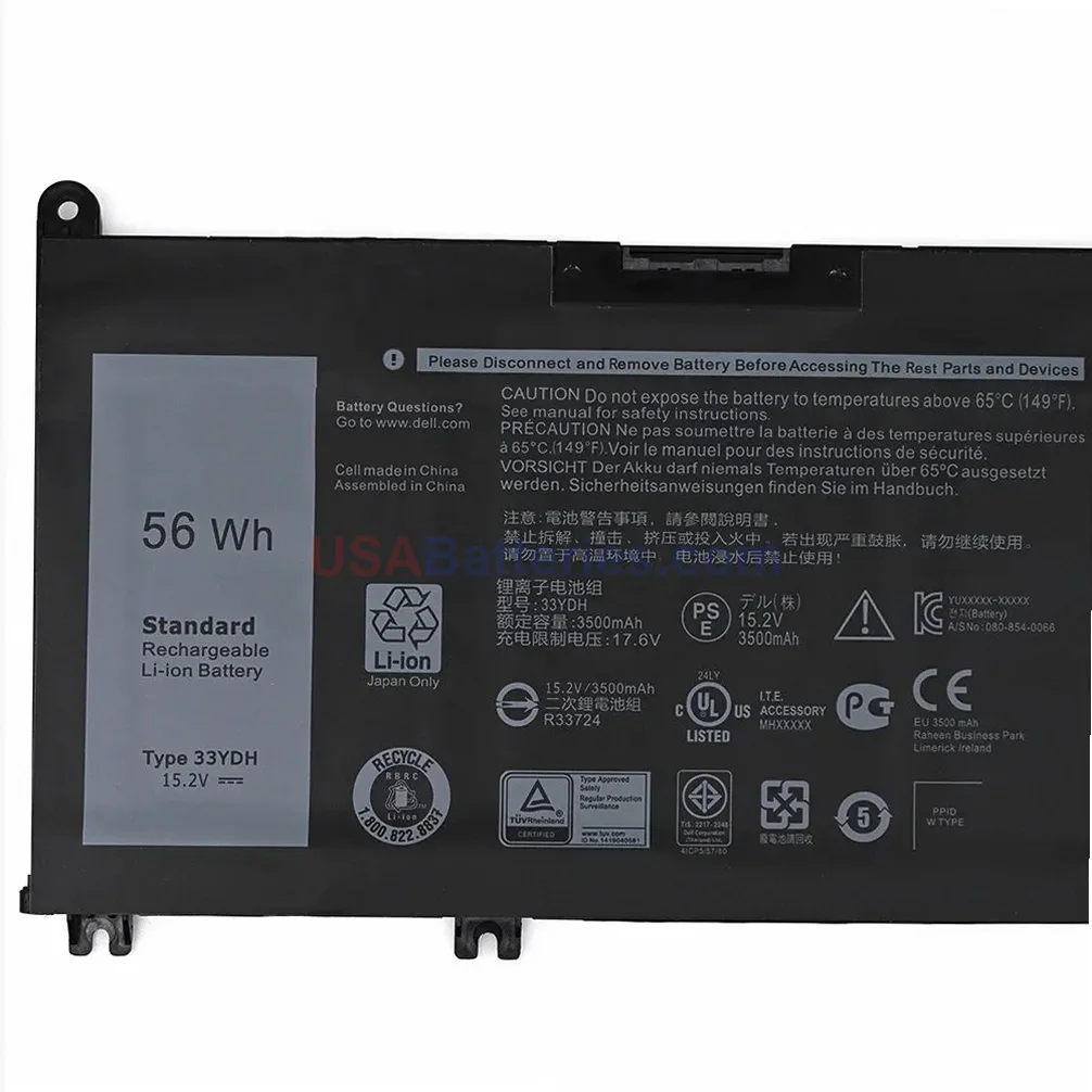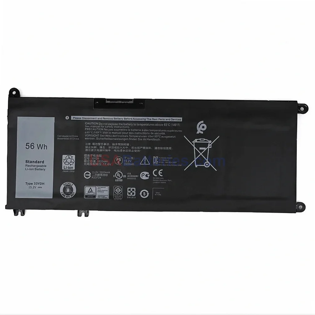 This direct-fit 33YDH features a 15.2V configuration with 56.0Wh capacity and 3500mAh rating, delivered through a 4-cell lithium-ion design. Built with Samsung cells for dependable performance, this battery provides the correct voltage and capacity specifications required by your Inspiron system. The lithium-ion chemistry ensures consistent power delivery while maintaining optimal charging characteristics for daily computing needs.