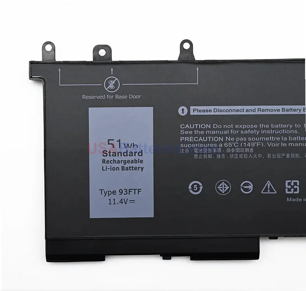 New replacement battery for Dell laptops using the 93FTF part number.