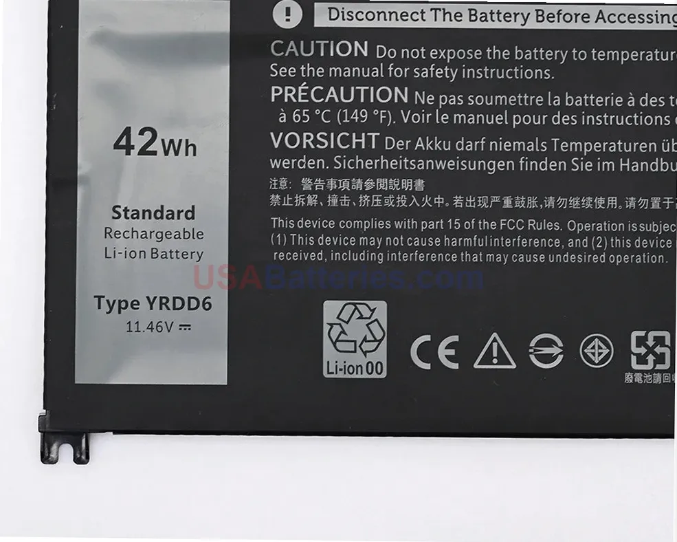 Replacement Dell YRDD6 battery for select Dell laptops.