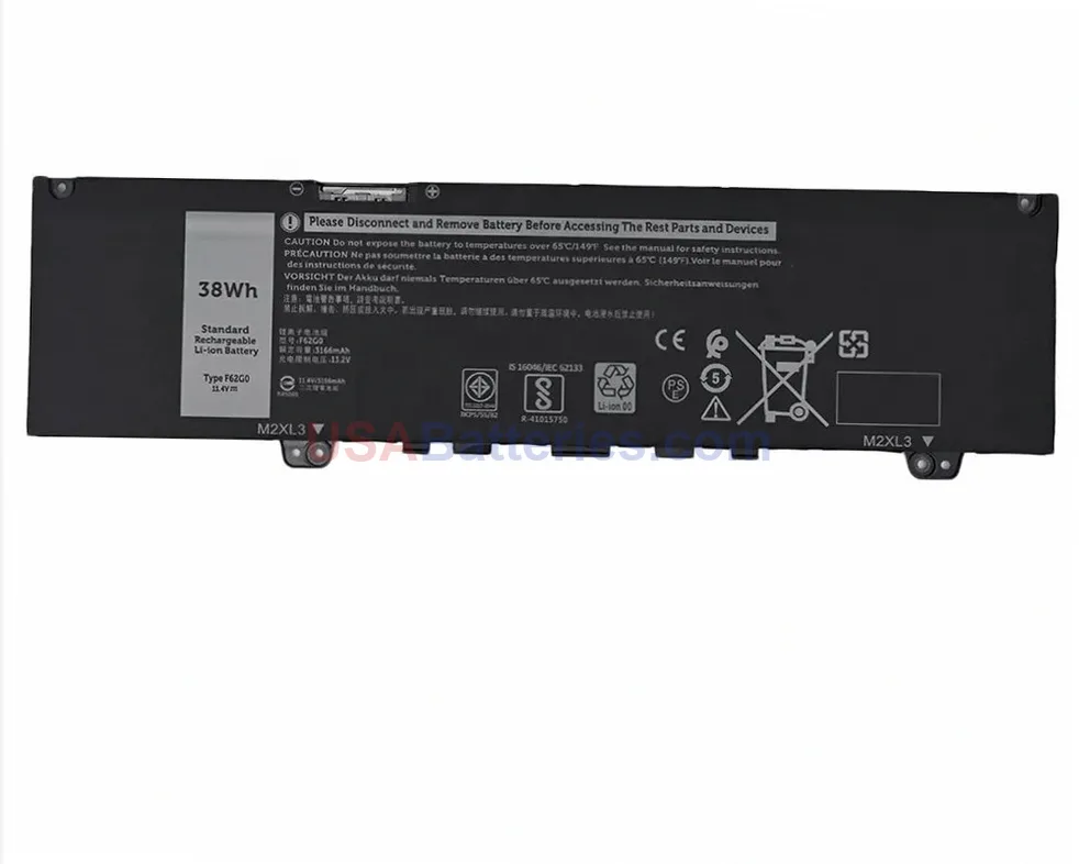 Upgrade your Dell laptop with a new F62G0 battery, designed to fit Inspiron 13-5370 and compatible models. This replacement F62G0 battery is engineered for precise compatibility with Inspiron 13 5370-D laptop families, ensuring reliable power delivery and seamless integration. The battery is also compatible with alternate part numbers including F62GO, 0F62G0, RPJC3, 0RPJC3, and 39DY5, making it a versatile replacement solution for multiple Dell configurations. Whether you need to replace an aging battery or want a backup power source, this F62G0 replacement provides the exact specifications your laptop requires for optimal performance.