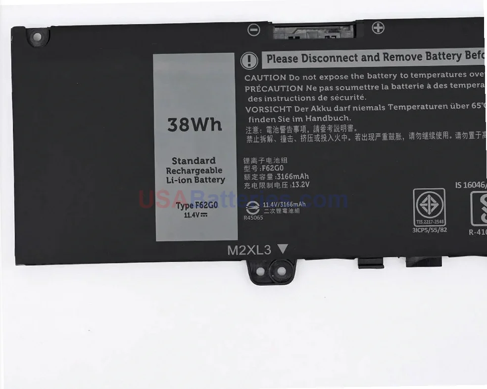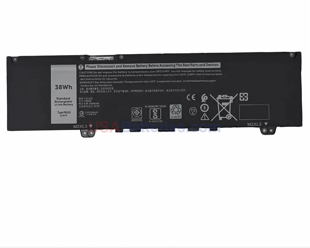 Replace your original Dell battery with a brand new 39DY5, compatible with Dell Inspiron 13 7370 7373 notebooks. This 39DY5 replacement battery works perfectly with Dell Inspiron 13 5370-D, Inspiron 13-7370, Inspiron 13-7370-1733, Inspiron 13-7370-1740, Inspiron 13-7370-7VF2T, and Inspiron 13-7370-8HK47 laptop models. The battery also replaces alternate part numbers F62G0, F62GO, 0F62G0, and RPJC3, ensuring broad compatibility across multiple Dell Inspiron configurations. This direct replacement provides the correct specifications your laptop requires for optimal performance.