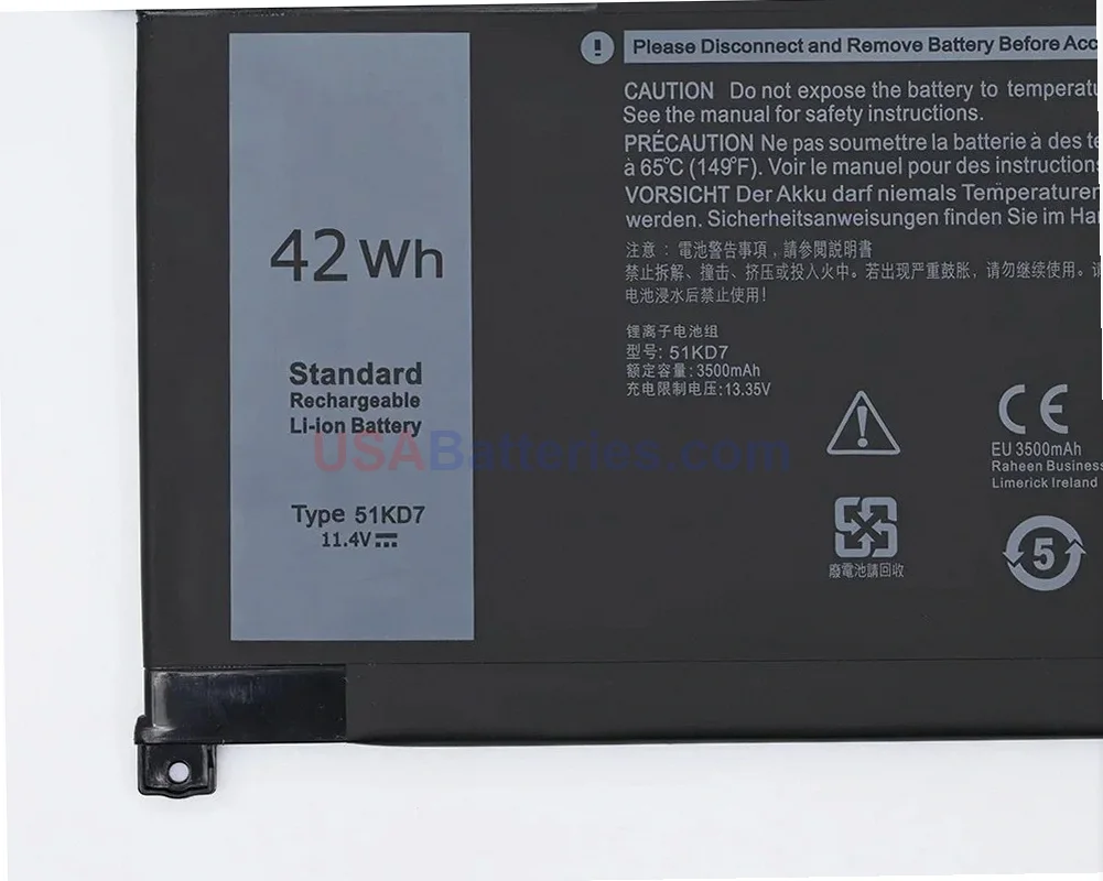 This direct-fit replacement operates at the correct voltage of 7.6V and provides 60.0Wh capacity with 7895mAh power storage. The 6CYH6 features a 3-cell configuration using premium lithium-ion cells that match original specifications. The Li-ion chemistry ensures stable performance and maintains consistent power delivery throughout the discharge cycle, making it an equivalent replacement for your laptop power needs.