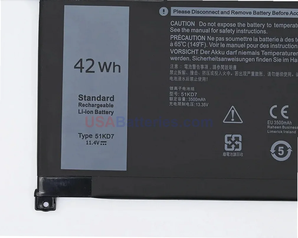 This direct-fit 725KY replacement battery operates at the correct voltage of 7.6V and provides 60.0Wh of capacity through its 3-cell configuration. Built with premium lithium-ion cells rated at 7895mAh, this battery delivers equivalent performance to your original Dell battery. The lithium-ion chemistry ensures stable power delivery and maintains consistent performance throughout each charge cycle.
