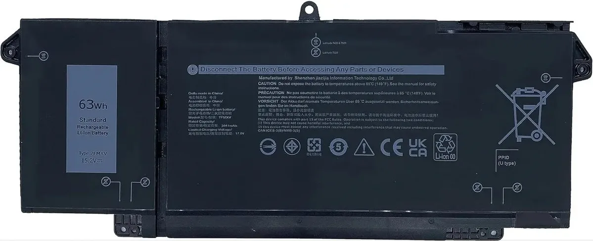 The Dell 7FMXV delivers superior performance with its 3-cell design engineered for demanding business workloads on Latitude 13 5320 laptops. This 15.2V 63Wh lithium-ion battery provides the reliable power needed for intensive multitasking across compatible models including the Latitude 13 5320 2-in-1, Latitude 13 7320, and Latitude 14 7420. With 4100mAh capacity and advanced cell technology, this replacement battery restores full mobility to your Dell laptop when the internal battery no longer holds charge.