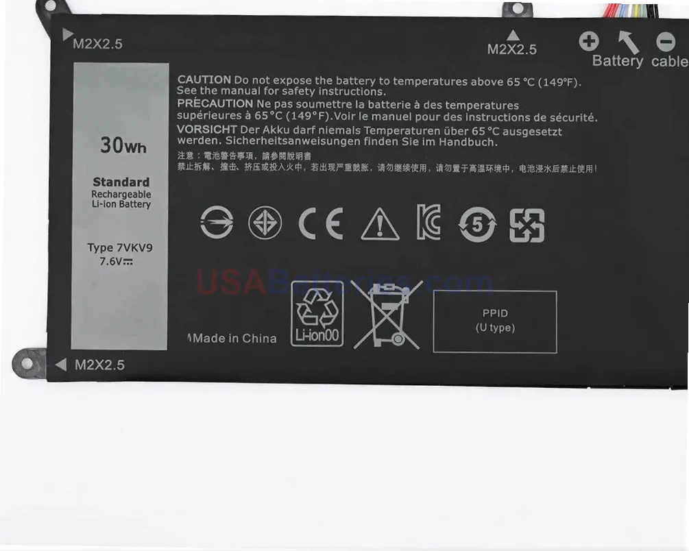 This direct-fit replacement battery operates at 7.6 volts and provides 30.0 watt-hours of capacity through its 2-cell lithium-ion design. The 4020mAh capacity ensures dependable performance that matches your original 7VKV9 battery specifications. Built with Samsung cells, this battery delivers the correct voltage and power output your Dell laptop requires for optimal operation.