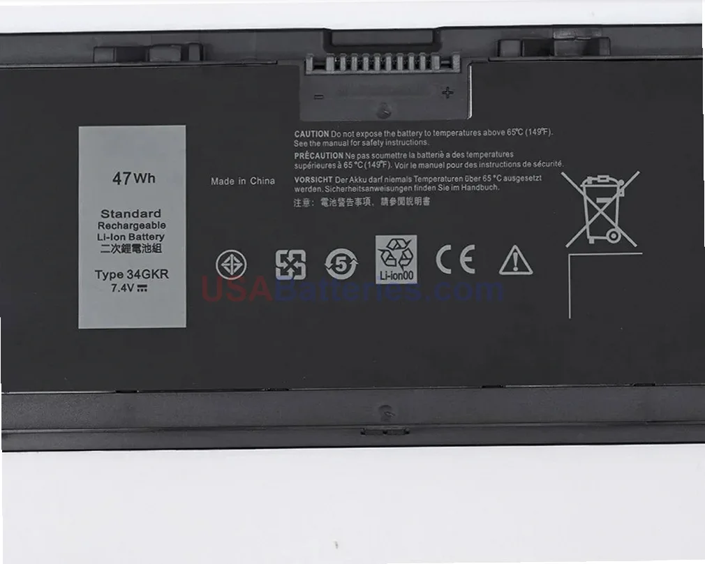 This direct-fit 34GKR replacement delivers 7.4V and 47.0Wh capacity with 6351mAh power storage. The 4-cell lithium-ion design uses premium lithium-ion cells to provide the correct voltage and capacity specifications for your laptop. Built with quality cells and advanced chemistry, this battery maintains consistent power output and reliable performance throughout its service life.