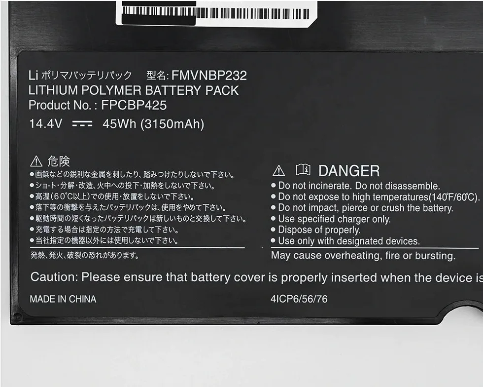 Replacement battery for Fujitsu Lifebook T904, T935, T936 and U745 series laptops.