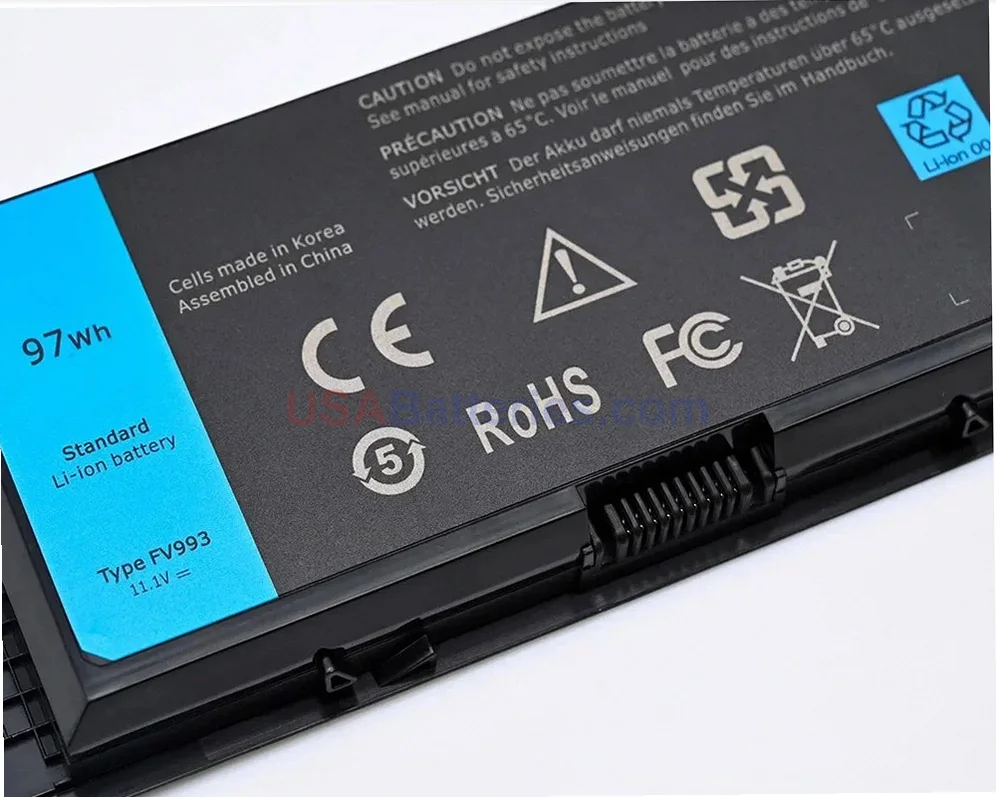 This high-capacity FV993 replacement battery fits select Dell Dell Precision Mobile laptops as an equivalent direct replacement. The FV993 is designed to work seamlessly with Dell Precision Mobile systems that originally used part numbers 312-1178, 312-1353, 312-1354, 451-BBG0, or 72KRT. This replacement FV993 battery provides reliable power for mobile workstation users who need dependable performance from their Dell Precision Mobile laptops. Compatible cross-reference numbers include 9GPO8, JHYP2, H1MNH, and PG6RC, ensuring broad compatibility across Dell’s mobile workstation lineup.