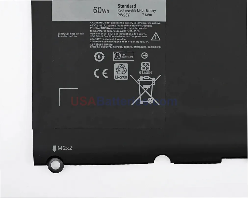 This direct-fit RNP72 battery operates at the correct voltage of 7.6V and provides 60.0Wh capacity with 7895mAh rating for extended mobile computing sessions. The Li-Po chemistry construction utilizes Samsung cells to deliver consistent power output and reliable performance throughout the battery’s lifespan. This equivalent replacement maintains the same electrical specifications as your original battery, ensuring proper charging and power delivery for your Dell laptop system.