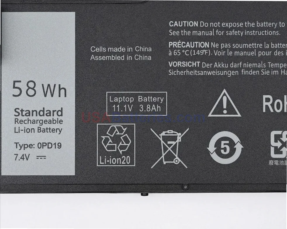 This new 1V2F6 replacement battery is the correct fit for select Dell compatible laptops. The 1V2F6 battery provides reliable power for your portable computer, ensuring consistent performance during daily use. This replacement battery also works with alternate part numbers including 01V2F6, 0PD19, 451-BBJY, and 451-BBK1, making it a versatile solution for multiple Dell systems. Cross-compatible part numbers like 58DP4, 5MD4V, 86JK8, and 9HRXJ further expand the range of laptops that can benefit from this 1V2F6 replacement battery, providing users with a dependable power source for their mobile computing needs.