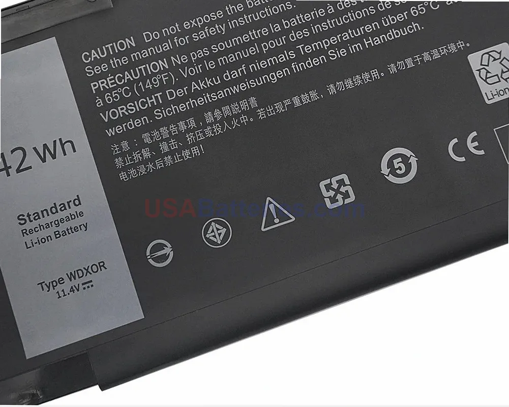 This direct-fit WDX0R replacement battery delivers 11.4 volts with 42.0Wh capacity and 3684mAh power storage through its 3-cell lithium-ion configuration. Built with Samsung cells for reliable performance, this battery maintains the correct voltage specifications for safe operation in your Dell laptop. The lithium-ion chemistry provides consistent power delivery and maintains charge retention over time.