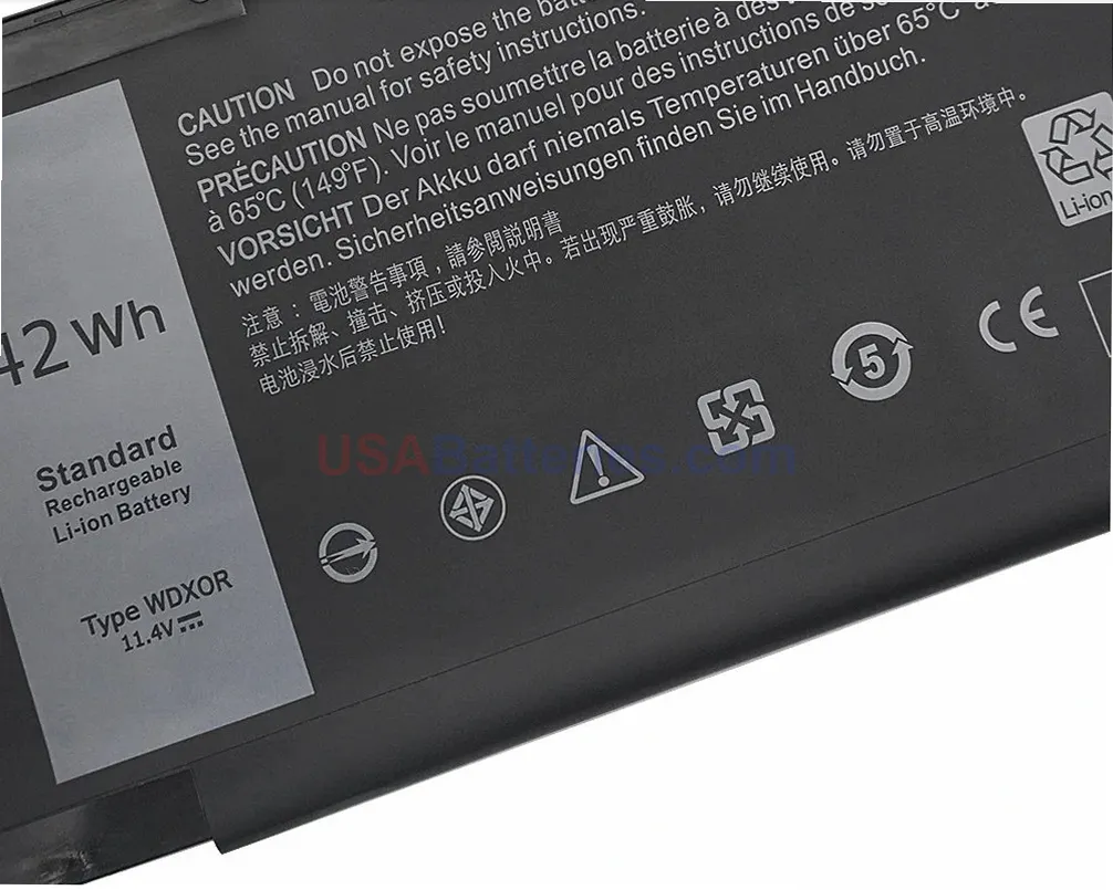 Direct-fit Dell WDX0R replacement battery for select laptop models.