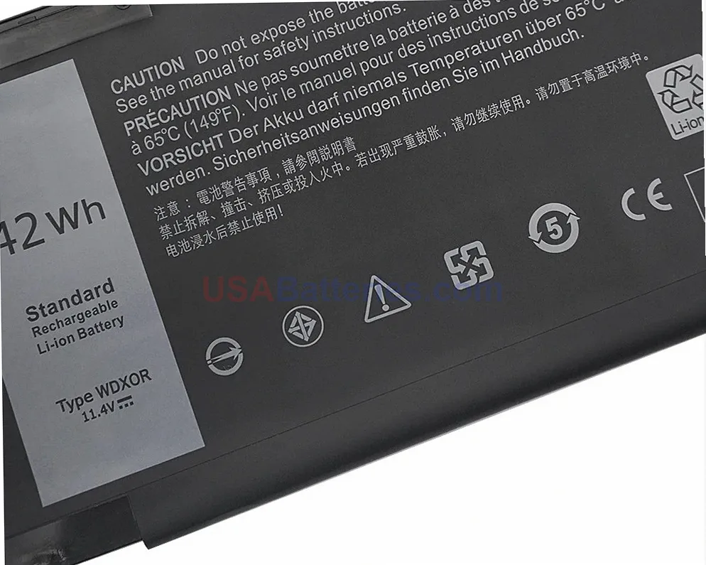 Direct-fit Dell WDX0R replacement battery for select laptop models.