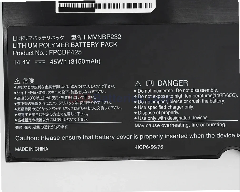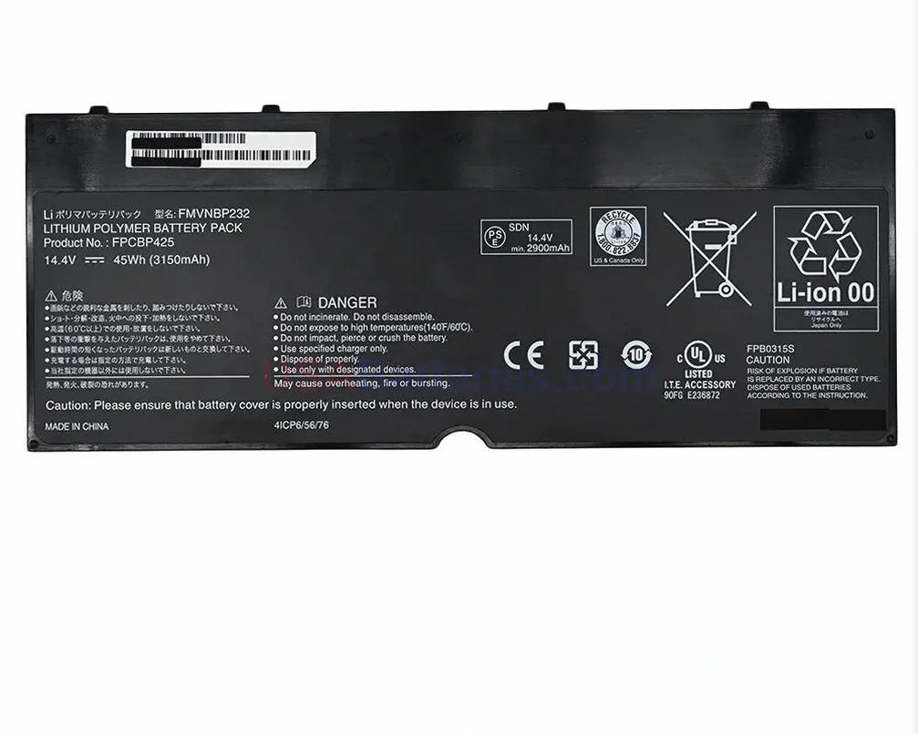 New replacement battery for Fujitsu laptops using the FPCBP425AP part number.