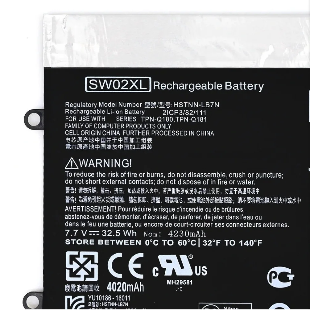 | Compatible Part Numbers | 0A03, 0A04, 10-P018WM, 1272WM, CQ14, CQ15, F112, F113, F114, F115, F272WM, F3B96AA, G6E88AA, H000, HS04, HSTNN-C81C, HSTNN-C82C, HSTNN-C83C, HSTNN-DB5M, HSTNN-DB6I, HSTNN-DB6K, HSTNN-DB6L, HSTNN-IB6R, HSTNN-LB5S, HSTNN-LB5Y, HSTNN-LB6I, HSTNN-LB6J, HSTNN-LB6K, HSTNN-PB5Y, HSTNN-UB5M, HSTNN-UB5N, HSTNN-Y5BV, HSTNN-YB5M, J1V00AA, JC04, K000, KI04, LA04, LA04041-CL, LA04041DF-CL, LA04DF, OA03, OA04, Q129, Q130, Q131, Q132, Q139, Q140, Q141, Q142, Q143, Q144, S000, SW02XL, V104, VI04, VI04048, VI04048-CL |