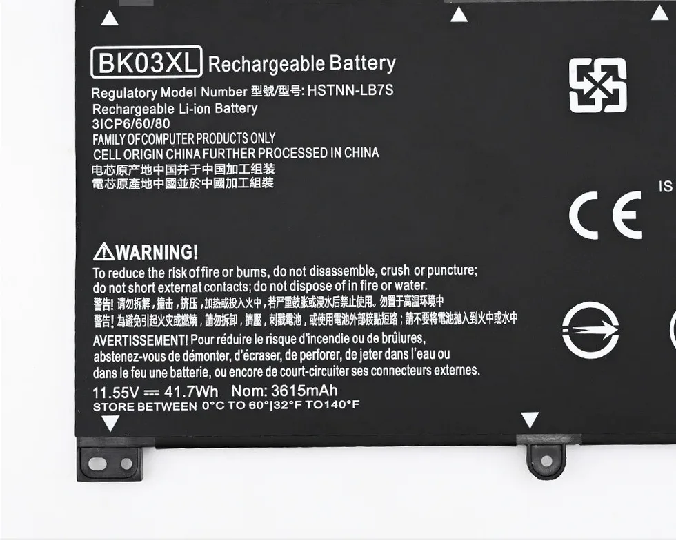 | Compatible Part Numbers | 14-BA125CL, 14-BA175NR, 14-BA253CL, 14M, 14M-BA013DX, 2.96AH, 3ICP6, 916366-541ใ916811-855ใ916812-855ใTPN-W125, BA000, BA001NS, BA002NE, BA004NI, BA006NG, BA009LA, BA011DX, BA011NG, BA012ND, BA012NG, BA013DX, BA013NG, BA015DX, BA015NG, BA016NA, BA017NG, BA018CA, BA018NG, BA019NG, BA020NG, BA021NG, BA024NL, BA026NG, BA027NG, BA028NG, BA029NP, BA029NS, BA030NG, BA031NG, BA032NA, BA033TX, BA034TX, BA035TX, BA036TX, BA037TX, BA038TX, BA074TU, BA0XX, BA100, BA110NR, BA113NG, BA114DX, BA118TU, BA125CL, BA126ND, BA153CL, BA170NG, BA170NZ, BA174CL, BA174NZ, BA175NR, BA1XX, BA253CL, BA2XX, BAL125CL, BK03041XL, BK03XL, BK03XLใHSTNN-UB7GใHSTNN-LB7Sใ916366-421, BO03032XL, BO03032XL-PL, BO03032XL-PR, BO03XL, BY0000, BY0021CY, BY0021DX, BY0053CL, BY0060NR, BY1033DX, BY1053DX, BY1055CL, C136, CF0000, CF0014DX, CF1015CL, CM0000, CM0012NR, CM0020NR, CR0000, CR0010NR, CR0037WM, CR0051CL, CR0052OD, CR0055OD, CR0087CL, CR0091MS, CS0000, CS0006TU, CS0051WM, CS0053CL, CS0072WM, CS025CL, CS1063CL, CS1065CL, CS2010NR, CS2073CL, CS2079NR, CW0000, CW1063WM, DA0000, DA0002DX, DA0012DX, DA0014DX, DA0032WM, DA0033WM, DA0066CL, DA0071MS, DA0073MS, DA0079NR, DA0086OD, DA1005DX, DB0000, DB0005DX, DB0011DX, DB0015DX, DB0031NR, DB0048CA, DB0048NR, DB0051OD, DB0066WM, DW0033NR, HSTNN-DB8R, HSTNN-DB8S, HSTNN-IB6S, HSTNN-IB80, HSTNN-IB8O, HSTNN-LB6S, HSTNN-LB7S, HSTNN-LB8L, HSTNN-LB8M, HSTNN-UB6R, HSTNN-UB6S, HSTNN-UB7G, HSTNN-UB7J, HT03041XL, HT03XL, HTO3XL, HW03XL, I130, I131, I132, I133, I134, L11119-855, L11421, L11421-1C1, L11421-1C2, L11421-2C1, L11421-2C2, L11421-2D1, L11421-2D2, L11421-421, L11421-422, L11421-423, L11421-542, L11421-544, L11421-545, Q207, Q208, Q209, Q210, TPN-Q155, W125, X360 |