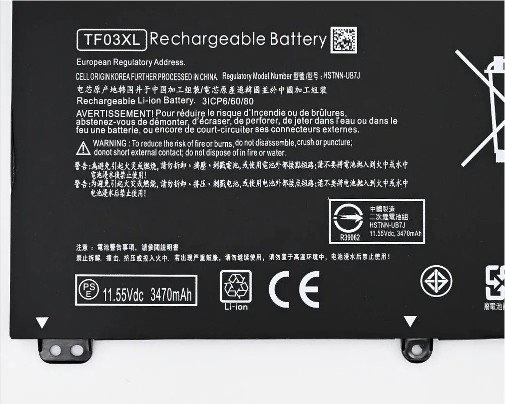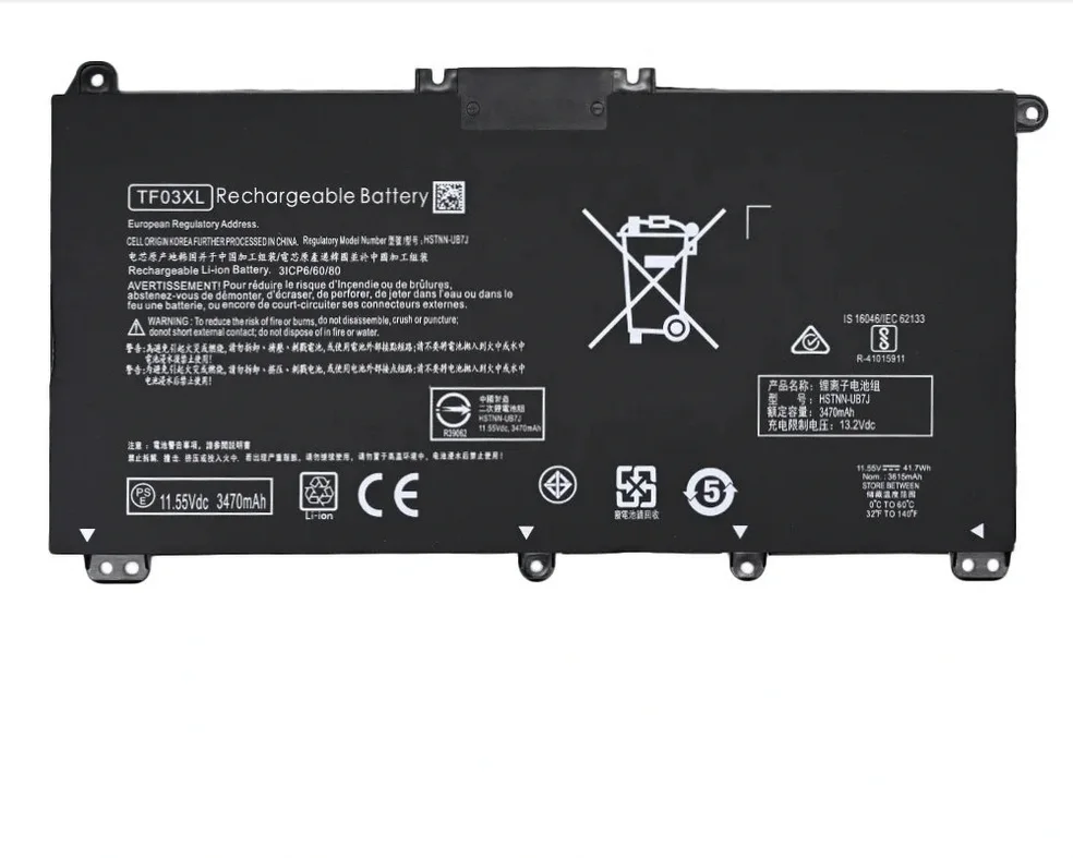 | Compatible Part Numbers | 14-BF, 14-BF034TX, 14-CD, 15-CC, 15-CC000NO, 15-CD, 3ICP6/60/80, HSTNN-IB7Y, HSTNN-LB7J, HSTNN-LB7L, HSTNN-LB7X, HSTNN-UB7J, HT03XL, TF03XL, X360 |