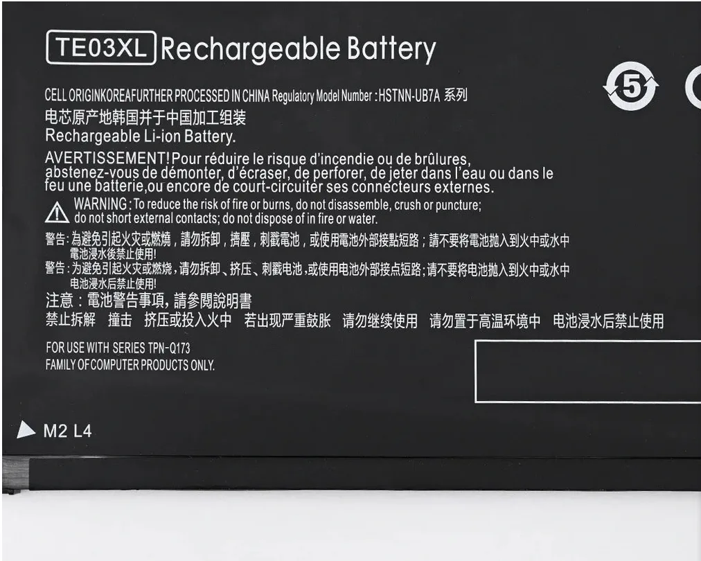 | Compatible Part Numbers | 14-CE, 14-CF, 14-DF, 15-AX000, 15-AX030TX, 15-AX033DX, 15-BC000, 15-BC015TX, 15-CS, 15-CW1XXX, 15-DA, 15-DA0014DX, 15-DB, 15-DB0004DX, 15-DW, 15-DY, 17-BY, 17-CA, 61.6WH, A0171-01217, AX000, AX015TX, AX016TX, AX017TX, AX018TX, AX019TX, AX020TX, AX030TX, AX031TX, AX032TX, AX033DX, AX033TX, BC000, BC011TX, BC012TX, BC013TX, BC014TX, BC015TX, BY0022CY, BY0053CL, BY1033DX, BY1053DX, BY2075CL, CA0064CL, CA1065CL, CR0017NR, CR0064ST, CS0025CL, CS0053CL, CS0057OD, CS0058OD, CS0064ST, CS0073CL, CS0XXX, CS1063CL, CS1065CL, CS200, CS2064ST, CS2073CL, CS300, CS3065CL, CS3073CL, CS3153CL, CS3672CL, CS3XXX, CU0058NR, CW000, CW0001LA, CW0001NS, CW100, CW1004LA, CW1063WM, CW1068WM, CW1XXX, DA0002DX, DA0014DX, DA0032WM, DA0033WM, DA0053WM, DA0073MS, DA0XXX, DA1005DX, DB0004DX, DB0005DX, DB0011DX, DB0015DX, DW0033NR, DW0035CL, DW0037WM, DW0038WM, DW0043DX, DW0053NL, DW100, DW2025CL, DY0013DX, DY1043DX, DY1076NR, DY1751MS, HSTNN-DB8R, HSTNN-OB7T, HSTNN-UB7A, HSTNN-UB7J, HT03XL, L11119-855, Q173, TE03XL, TPN-Q173, TPN-Q173(11.55V |