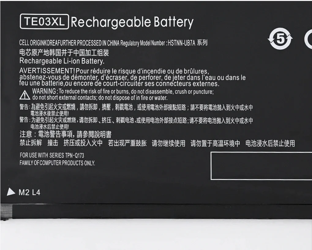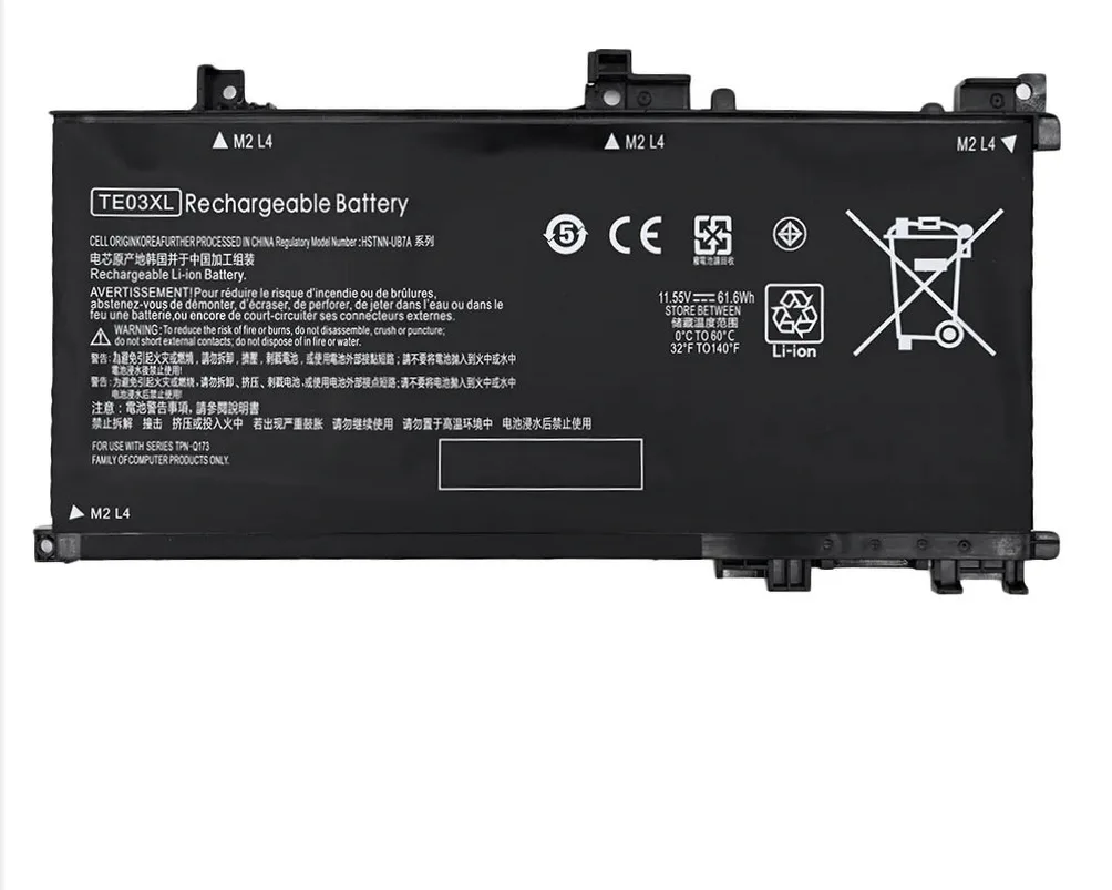 | Compatible Part Numbers | 15-AX000, 15-AX015TX, 15-AX016TX, 15-AX017TX, 15-AX018TX, 15-AX019TX, 15-AX020TX, 15-AX03, 15-AX030TX, 15-AX031TX, 15-AX033DX, 15-BC000, 15-BC015TX, 61.6WH, AX000, AX015TX, AX016TX, AX017TX, AX018TX, AX019TX, AX020TX, AX030TX, AX031TX, AX032TX, AX033DX, AX033TX, BC000, BC011TX, BC012TX, BC013TX, BC014TX, BC015TX, BY0000, BY0021CY, BY0021DX, BY0053CL, BY0060NR, BY1033DX, BY1053DX, BY1055CL, C136, CF0000, CF0014DX, CF1015CL, CM0000, CM0012NR, CM0020NR, CR0000, CR0010NR, CR0037WM, CR0051CL, CR0052OD, CR0055OD, CR0087CL, CR0091MS, CS0000, CS0006TU, CS0051WM, CS0053CL, CS0072WM, CS025CL, CS1063CL, CS1065CL, CS2010NR, CS2073CL, CS2079NR, CW0000, CW1063WM, DA0000, DA0002DX, DA0012DX, DA0014DX, DA0032WM, DA0033WM, DA0066CL, DA0071MS, DA0073MS, DA0079NR, DA0086OD, DA1005DX, DB0000, DB0005DX, DB0011DX, DB0015DX, DB0031NR, DB0048CA, DB0048NR, DB0051OD, DB0066WM, DW0033NR, HSTNN-DB8R, HSTNN-DB8S, HSTNN-IB80, HSTNN-IB8O, HSTNN-LB8L, HSTNN-LB8M, HSTNN-UB7A, HSTNN-UB7J, HT03041XL, HT03XL, HTO3XL, HW03XL, I130, I131, I132, I133, I134, L11119-855, L11421, L11421-1C1, L11421-1C2, L11421-2C1, L11421-2C2, L11421-2D1, L11421-2D2, L11421-421, L11421-422, L11421-423, L11421-542, L11421-544, L11421-545, Q173, Q207, Q208, Q209, Q210, TE03XL, TPN-Q173(11.55V |