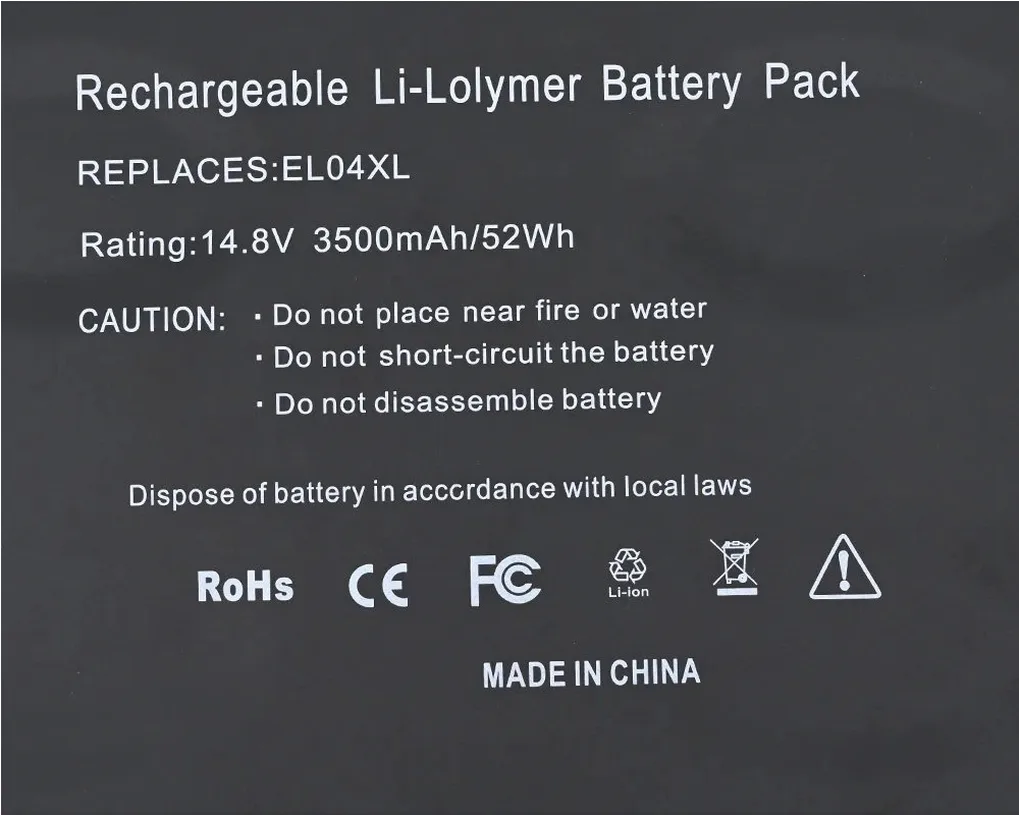 | Compatible Part Numbers | 4-1007TX, 4-1008TU, 4-1017TU, 681879-1C1, EL04, EL04XL, HSTNN-IB3R, HSTNN-UB3R, TPN-C102 |