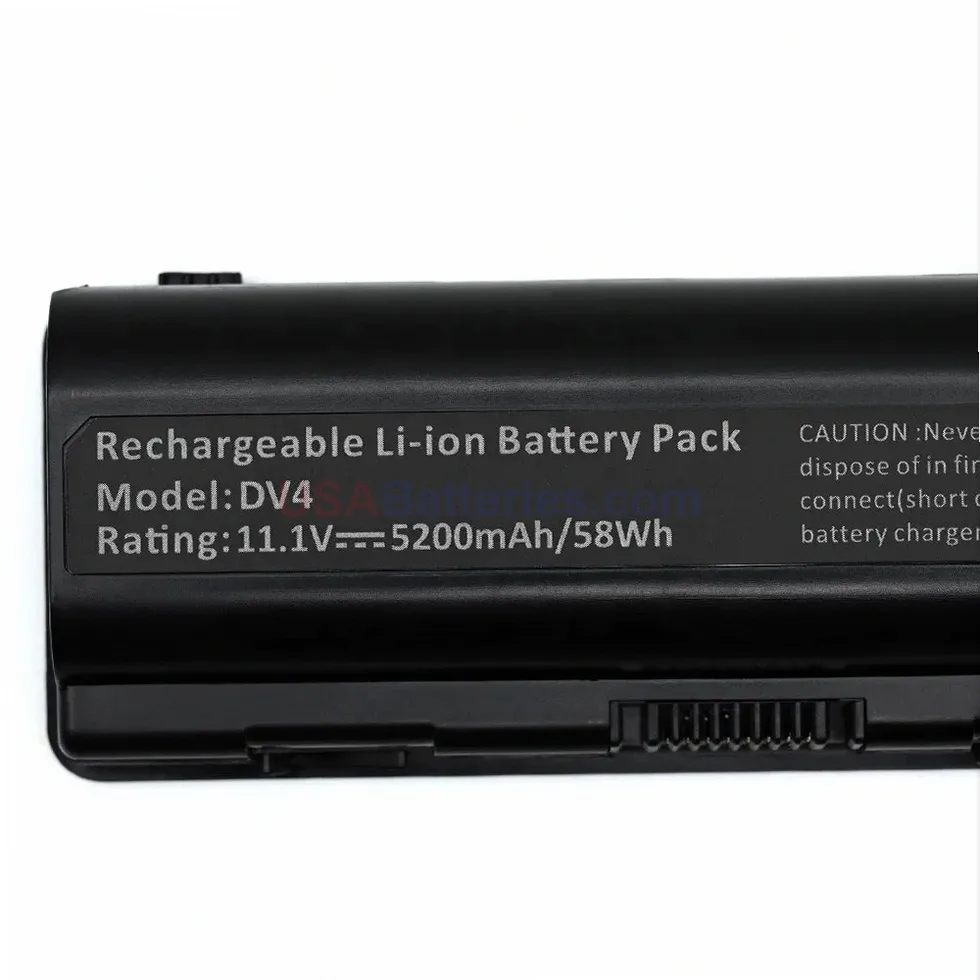 Direct-fit HP DV4 replacement battery for select laptop models.