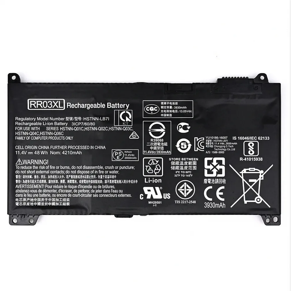 | Compatible Part Numbers | 3ICP6, 3ICP7/60/80, 445R, 455R, G6E88AA, HSN-Q06C, HSN-Q08C, HSTNN-0B1C, HSTNN-DB9A, HSTNN-LB6K, HSTNN-LB7I, HSTNN-OB1C, HSTNN-PB6W, HSTNN-Q01C, HSTNN-Q02C, HSTNN-Q03C, HSTNN-Q04C, HSTNN-Q06C, HSTNN-UB7C, HSTNN-UB7R, L32407-2B1, L32407-2B2, L32407-2C1, L32407-2C2, L32407-541, L32407-AC1, L32407-AC2, L32656-002, L32656-005, MT20, RE03045XL, RE03045XL-PL, RE03XL, RR03048XL, RR03XL, TPN-LA08, ZHAN66 |