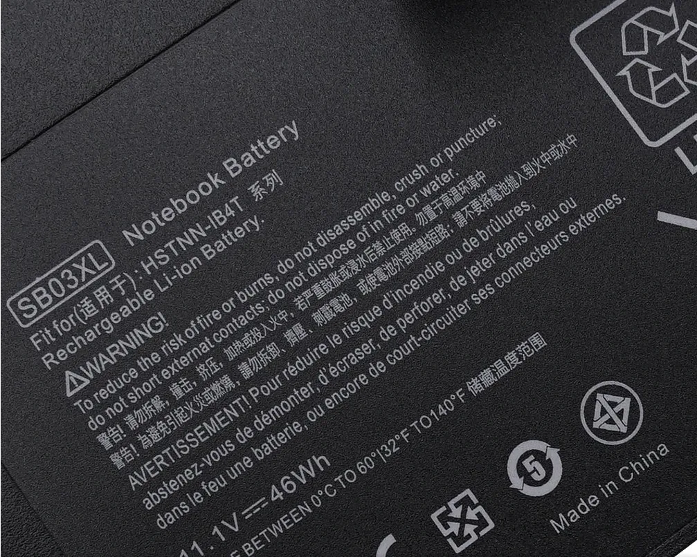 | Compatible Part Numbers | 112C, 113C-4, 113C-5, 15U, 6TP54EA, 6TP58EA, 6TP83EA, 716726-1C1, 8530P, 8540P, 8540W, 8730W, 8740W, 932823-1C1, 932823-2B1, 932823-2C1, 932824-1C1, 932824-2C1, A1953, E7U25AA, E7U25UT, F6B38PA, HSN-113C-5, HSN-I13C-5, HSTNN-1B8C, HSTNN-DB8J, HSTNN-DB8K, HSTNN-I13C, HSTNN-I43C, HSTNN-IB4T, HSTNN-IB8C, HSTNN-LB4T, HSTNN-LB60, HSTNN-LB8G, HSTNN-LB8H, HSTNN-OB60, HSTNN-UB7T, HSTNN-W46C, HSTNN-XB60, I13C-4, I13C-5, KU533AA, MT44, SB03046XL, SB03XL, SS03, SS03050XL, SS03050XL-PL, SS03XL, TT03056XL, TT03XL |