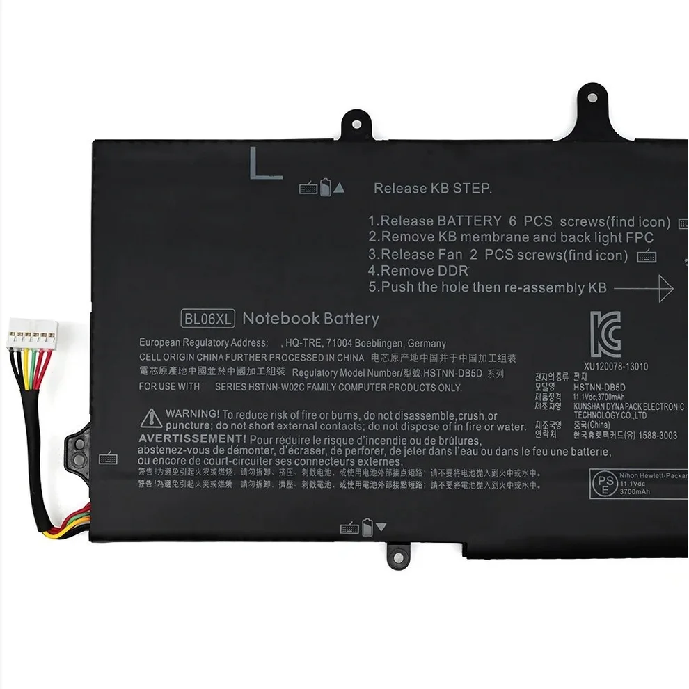 | Compatible Part Numbers | 3ICP4, 722236-1C1, 722236-2C1, BL06, BL06042XL, BL06042XL-PL, BL06O42XL, BL06XL, BLO6, BLO6XL, HSTNN-DB5D, HSTNN-IB5D, HSTNN-W02C, IB5D |