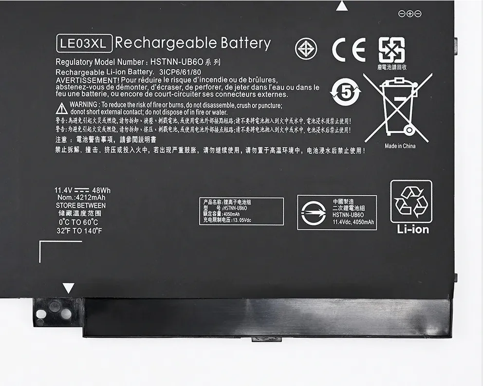 | Compatible Part Numbers | 13-S000, 13-S120NR, 15-BK000, 15-BK010NR, 3ICP6, BK000, HSTNN-PB6M, HSTNN-UB60, HSTNN-UB6O, HSTNN-YB5Q, LE03, LE03048XL, LE03048XL-PR, LE03XL, LEO3XL, M6-W101DX, S000, S020CA, S021CA, S100, UB60, UB6O, W010DX, W101DX, W102DX, W103DX, W113, W114, W116, X360, YB5Q |