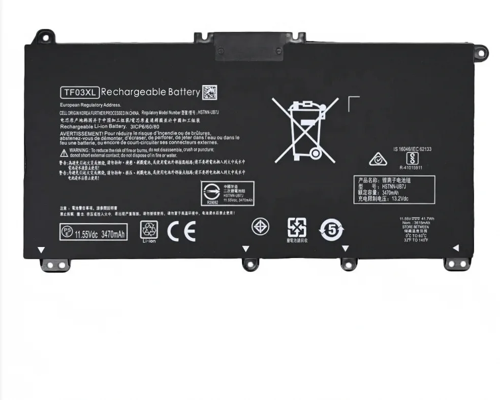 Compatible Part Numbers14-BF048TX, 15-EG, 15-EG0070WM, 15-EG0073CL, 15-EG0XXX, 15-EH, 17-CN, 17-CN0XXX, 17-CP, 17-CPO700DX, 3ICP6/, 920046-541, 920070-855, 920070-856, AR007CA, AR050WM, AR050WM15-CC005NG, BF050WM, BY0000, BY0021CY, BY0021DX, BY0053CL, BY0060NR, BY1033DX, BY1053DX, BY1055CL, C131, C136, CC005NI, CC005NK, CC005NL, CC005NM, CC005NO, CC005TU, CC005TX, CC005UR, CC006NC, CC006NG, CC006NI, CC006NK, CC006NL, CC006NO, CC006NX, CC006TX, CC006UR, CC007NC, CC007NG, CC007NT, CC007NX, CC007TX, CC007UR, CC008NC, CC008NO, CC008NT, CC008NX, CC0XX, CC123CL, CC154CL, CC184CL, CC1XX, CC561ST, CD0001DX, CD0056TX, CD075NR, CD0XX, CF0000, CF0014DX, CF1015CL, CM0000, CM0012NR, CM0020NR, CR0000, CR0010NR, CR0037WM, CR0051CL, CR0052OD, CR0055OD, CR0087CL, CR0091MS, CS0000, CS0006TU, CS0051WM, CS0053CL, CS0072WM, CS025CL, CS1063CL, CS1065CL, CS2010NR, CS2073CL, CS2079NR, CW0000, CW1063WM, DA0000, DA0002DX, DA0012DX, DA0014DX, DA0032WM, DA0033WM, DA0066CL, DA0071MS, DA0073MS, DA0079NR, DA0086OD, DA1005DX, DB0000, DB0005DX, DB0011DX, DB0015DX, DB0031NR, DB0048CA, DB0048NR, DB0051OD, DB0066WM, DF15, DW0033NR, EG0000, EG0010NR, EG0027OD, EG0048NR, EG0051CL, EG0055NR, EG0067ST, EG0070WM, EH0000NS, EH0006NX, EH0014NA, EH0037NW, EH0090WM, EH0177NG, EH1005NS, HSTNN-DB8R, HSTNN-DB8S, HSTNN-DB9Y, HSTNN-IB7Y, HSTNN-IB80, HSTNN-IB8O, HSTNN-IB90, HSTNN-IB9O, HSTNN-LB7J, HSTNN-LB7X, HSTNN-LB8, HSTNN-LB8L, HSTNN-LB8M, HSTNN-LB8U, HSTNN-OB2A, HSTNN-UB7J, HT03041XL, HT03XL, HTO3XL, HW03041XL, HW03041XL-PL, HW03XL, HWO3XL, I130, I131, I132, I133, I134, IB7Y, L11119-855, L11421, L11421-1C1, L11421-1C2, L11421-2C1, L11421-2C2, L11421-2D1, L11421-2D2, L11421-421, L11421-422, L11421-423, L11421-542, L11421-544, L11421-545, L96887-1D1, L96887-2B1, L96887-421, L96887-AC1, L97300-005, LB7J, LB7X, Q188, Q189, Q190, Q191, Q192, Q196, Q207, Q208, Q209, Q210, TF03041XL, TF03XL, TFO3XL, TPN-C131, TPN-Q188, TPN-Q189, TPN-Q190, TPN-Q191, TPN-Q192, TPN-Q196, X360