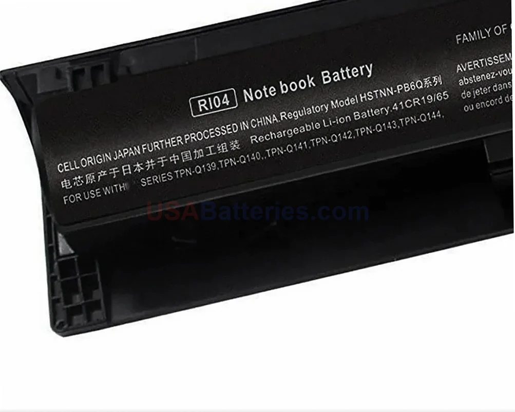 Direct-fit HP RI04 replacement battery for select laptop models.