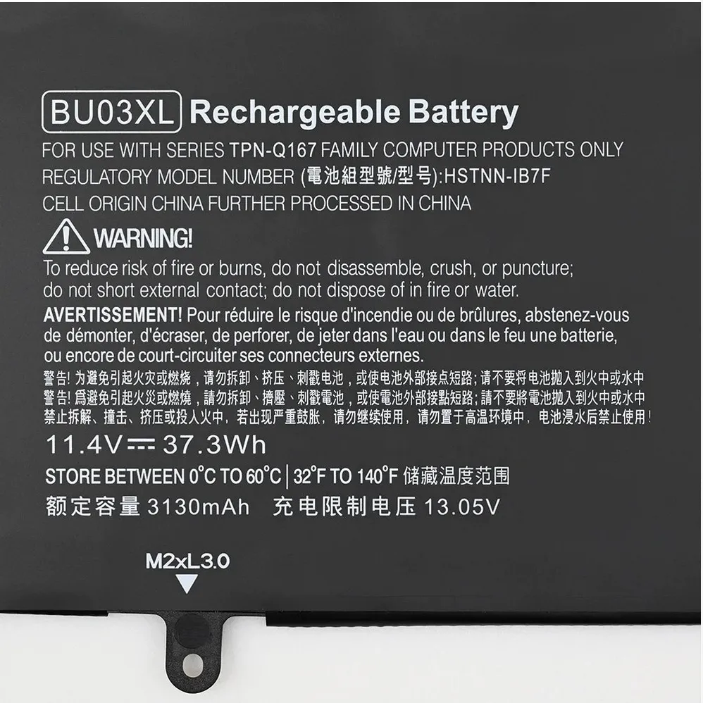 | Compatible Part Numbers | 1272WM, 14-AK, 14-AK010NR, 15-1272WM, 15-AC, 15-AC121DX, 15-AC130DS, 15-AF, 15-AF087NW, 15-AF093NG, 15-AF112NR, 15-AF113CL, 15-AF131CA, 15-AY, 15-BA, 15-BA009DX, 15-BA079DX, 15-BA113CL, 15-F233WM-HIGH, 714762-1C1, 714762-2C1, 816498-1B1, 816498-1C1, BU03037XL, BU03037XL-PL, BU03XL, F233WM, F2C29PA, F2C32PA, F2C36PA, F2C38PA, F2C39PA, F2C40PA, F3B96AA, G000, G000NA, G000NC, G000ND, G000NF, G000NK, G000NV, G000UR, G002NA, G002ND, G002NK, G002NO, G002NS, G003NG, G003NK, G003NM, G003NO, G003NS, G020NR, G020NZ, G020UR, G021NF, G022UR, G023NG, G024ND, G024NG, G024UR, G025DS, G025ND, G026DS, G026UR, G027DS, G027UR, G028DS, G077CL, G084CA, G099NR, G0R83PA, G0R84PA, G0R86PA, G100, G100NA, G101AU, G101AX, G101DX, G102AU, G102AX, G130NR, G193UR, G194UR, G195NG, G195UR, G196UR, G198UR, G199NR, G4W44PA, G4W52PA, G4X25PA, G4X32PA, G4X36PA, G4X37PA, G4X38PA, G4X39PA, G4X40PA, G4X44PA, G6G36PA, G6G37PA, G7Z05PA, G8C98PA, G8D14PA, H504, HS03, HS03031-CL, HS04, HS04041-CL, HSTNN-1B7F, HSTNN-DB6T, HSTNN-DB7J, HSTNN-IB6X, HSTNN-IB7F, HSTNN-LB4P, HSTNN-LB6R, HSTNN-LB6S, HSTNN-LB6U, HSTNN-LB6V, HSTNN-UB5M, HSTNN-UB5N, HSTNN-Y5BV, HSTNN-YB5M, IB6R, J1V00AA, J6M19PA, J6M20PA, J6M54PA, J7B79PA, J7B80PA, J8B61PA, K104, KI04, L119, LA04, LA04041-CL, LA04041DF-CL, LA04DF, N2L85AA, PX03XL, Q129, Q130, Q131, Q132, Q158, Q163, TPN-C109, TPN-C110, TPN-C111, TPN-Q167, W121 |