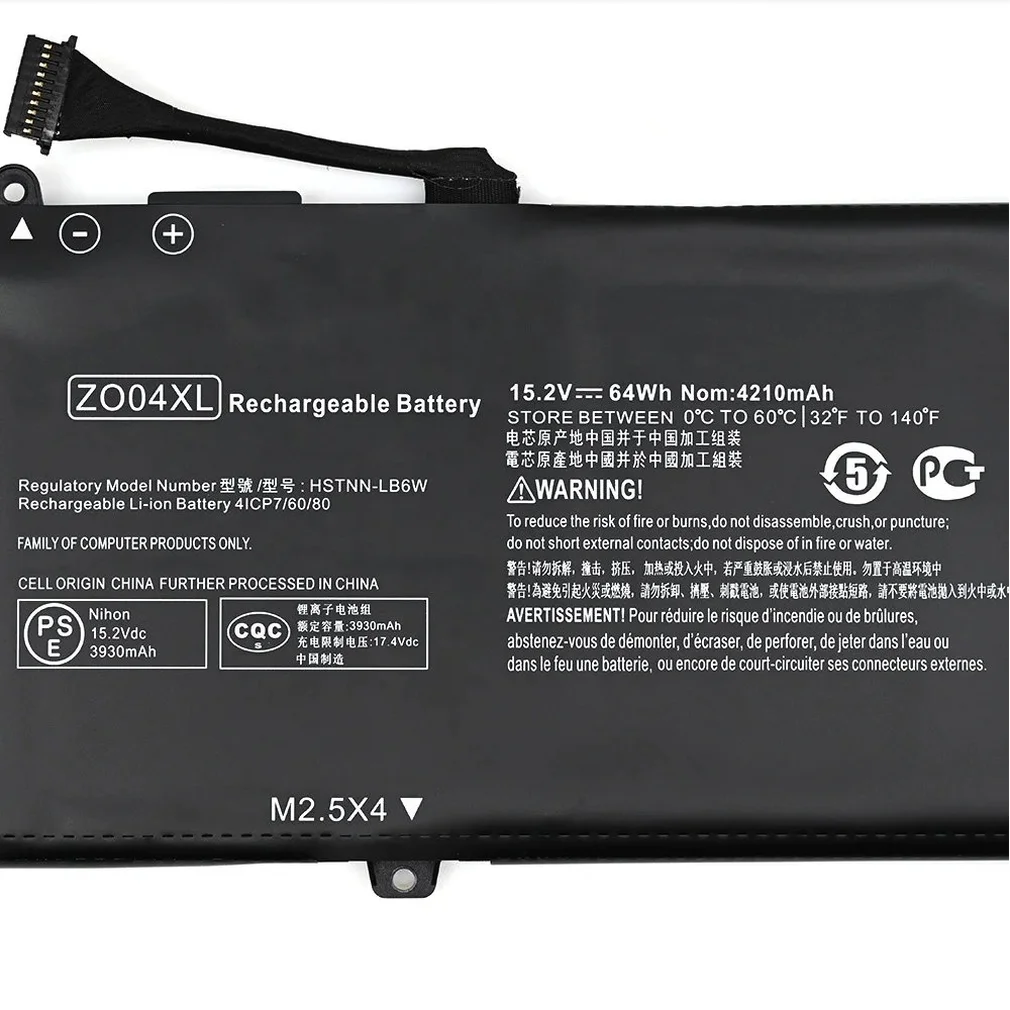 The HP ZO04XL serves as a reliable power solution for compatible HP laptop models requiring this specific battery configuration. This 15.2V 64Wh lithium-ion battery features 4-cell technology with 4210mAh capacity, engineered to meet the power demands of your mobile computing needs. Cross-compatible with multiple part numbers including 808396-42I, 808450-001, and C02C, this battery provides consistent performance for your HP notebook. The advanced Li-ion chemistry delivers stable voltage output throughout the discharge cycle.