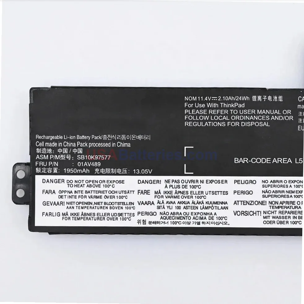 This direct-fit SB10K97580 replacement features 11.4V output voltage with 24.0Wh capacity delivered through a compact 3-cell lithium-ion design. The battery utilizes Samsung cells rated at 2105mAh capacity, providing the correct voltage and energy storage to match your laptop’s original specifications. The lithium-ion chemistry ensures stable power delivery and maintains consistent performance throughout the discharge cycle, making it an equivalent replacement for your ThinkPad’s power needs.