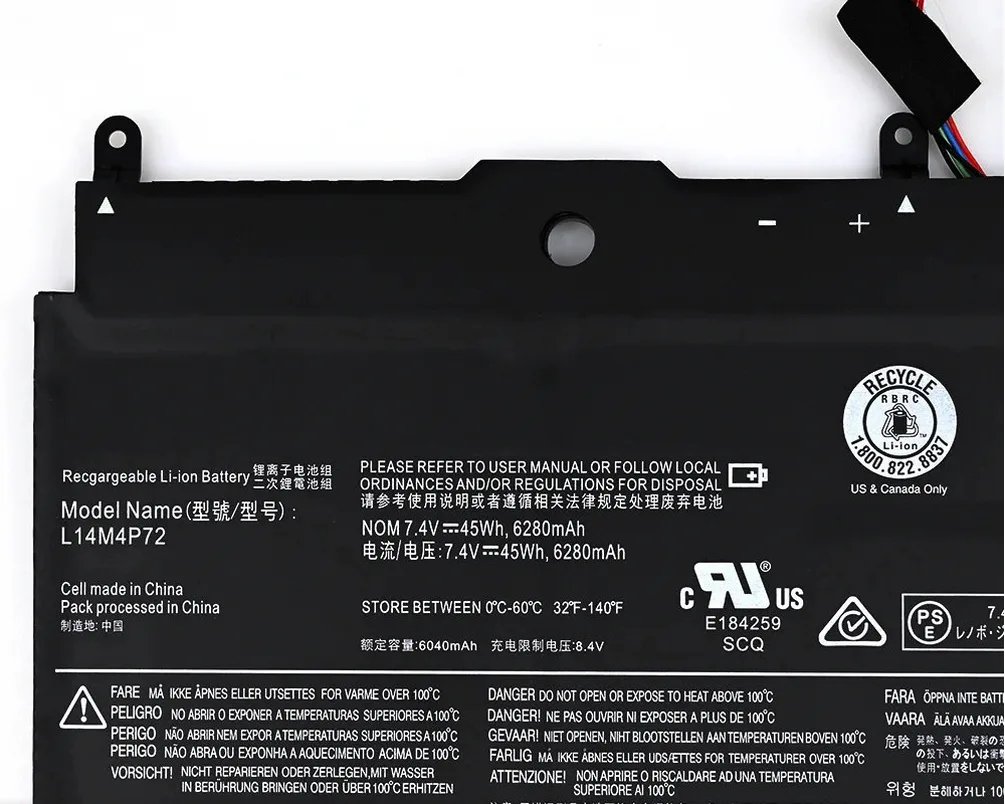 Replacement battery for Lenovo laptops using L14S4P72 part number.