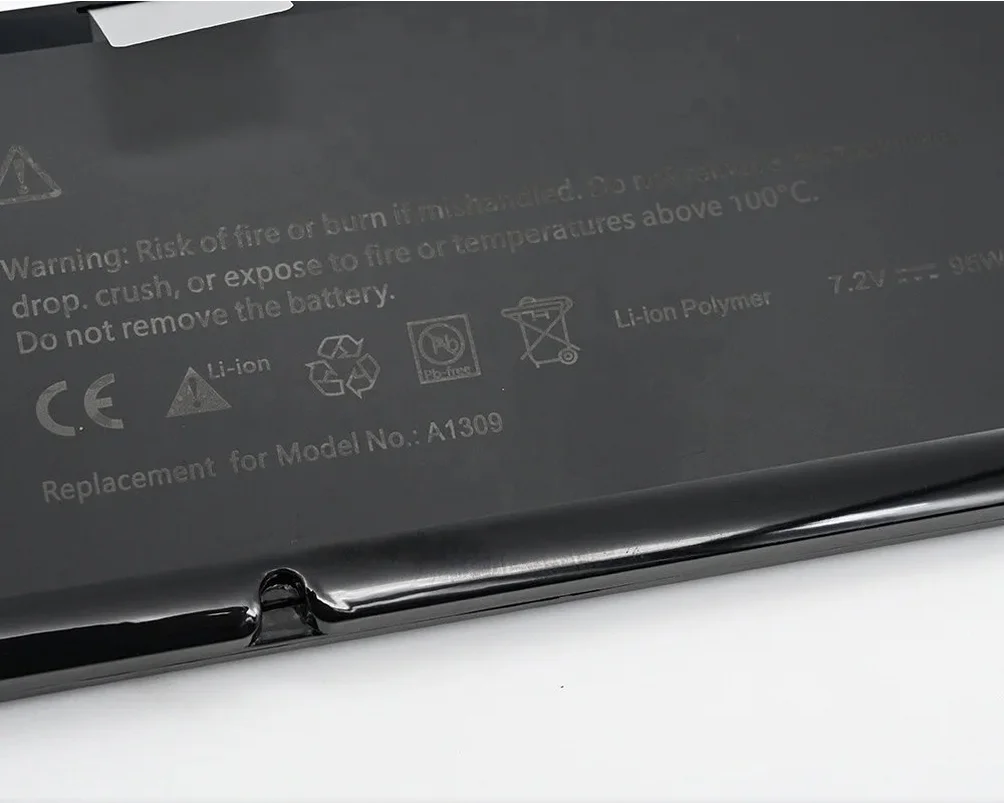 Built with premium-grade cells and engineered through rigorous testing protocols, the Macbook Pro A1309 delivers reliable power for your MacBook Pro 17″ system. This 7.2V 95Wh Li-polymer battery features advanced 2-cell construction with 6709mAh capacity to restore your laptop’s mobility. Each battery undergoes comprehensive quality control testing to ensure consistent performance and dependability. Professional-grade manufacturing processes guarantee optimal compatibility with MacBook Pro 17″ models requiring the A1309 specification.