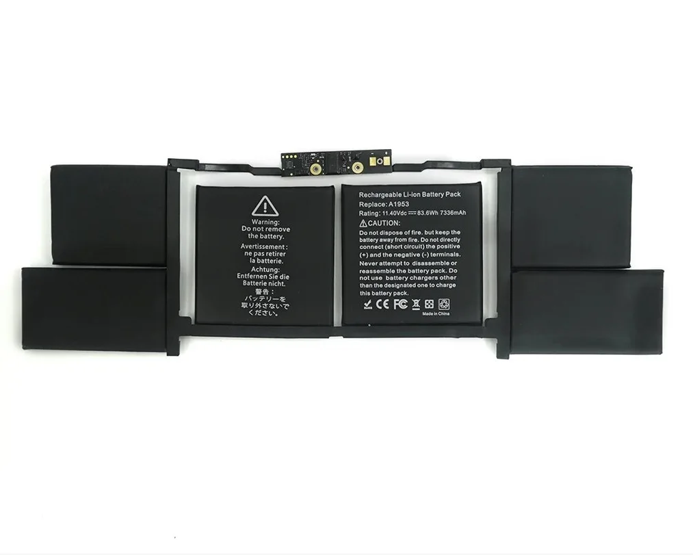 The Macbook Pro A1953 replacement battery powers MacBook Pro 15″ laptops with reliable 11.4V performance and 84.36Wh capacity. This 3-cell Li-polymer battery delivers consistent power for demanding workflows on your MacBook Pro. Built with premium lithium-polymer cells, this battery maintains stable voltage output throughout its discharge cycle. The compact design fits perfectly within your laptop’s battery compartment while providing the power you need for productivity.